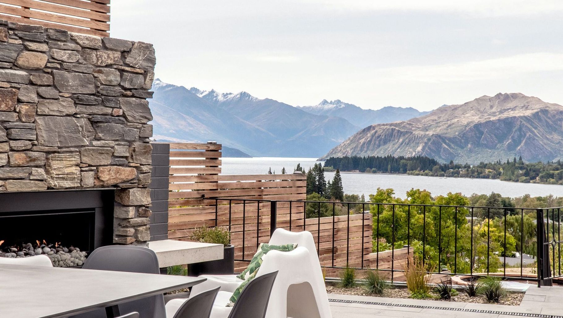ArchiPro Project Summary - A mid-century modern themed renovation that harmonizes interior and exterior design, enhancing the surrounding landscape and panoramic views, perfect for socializing in a holiday home with a fireplace and hot tub.