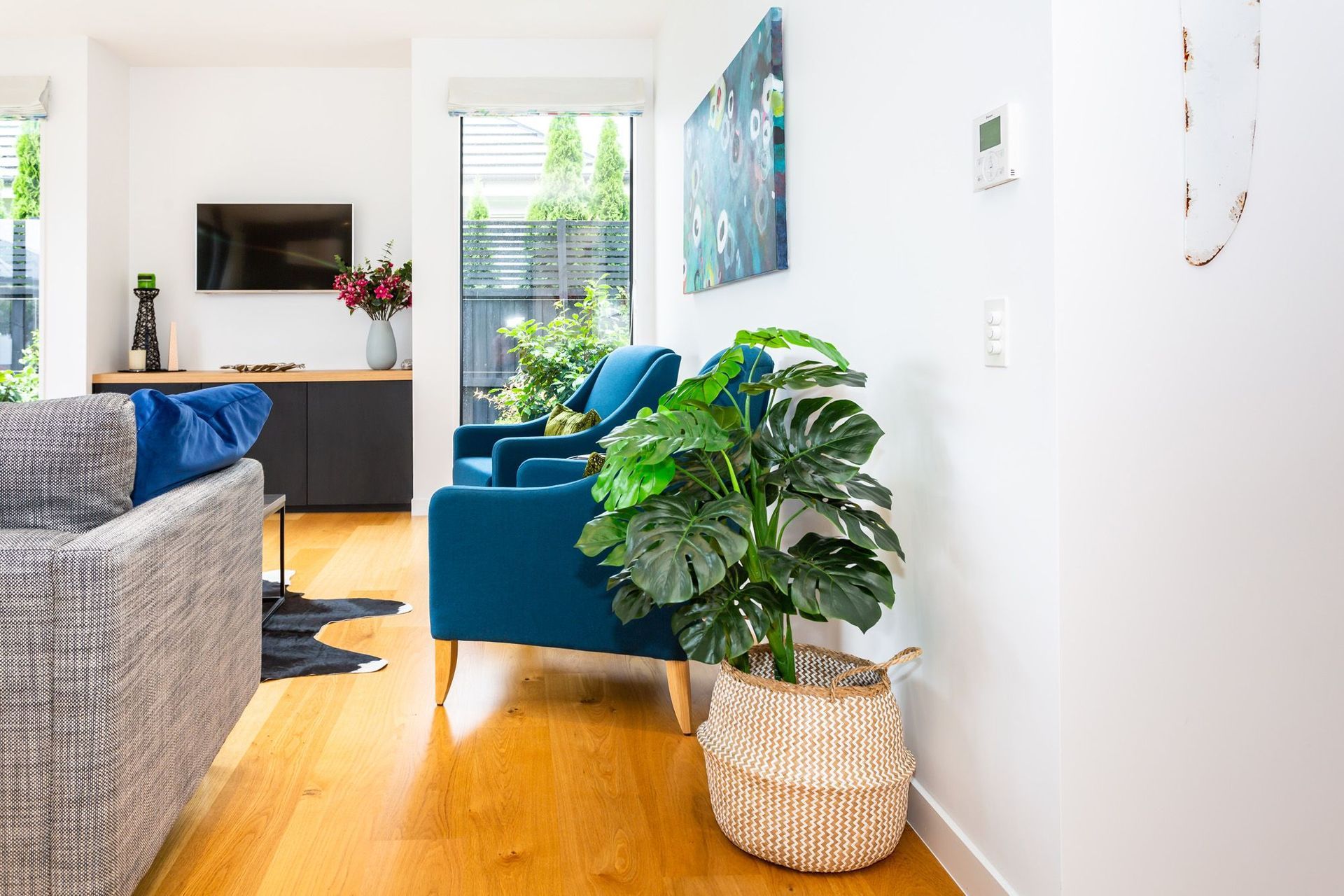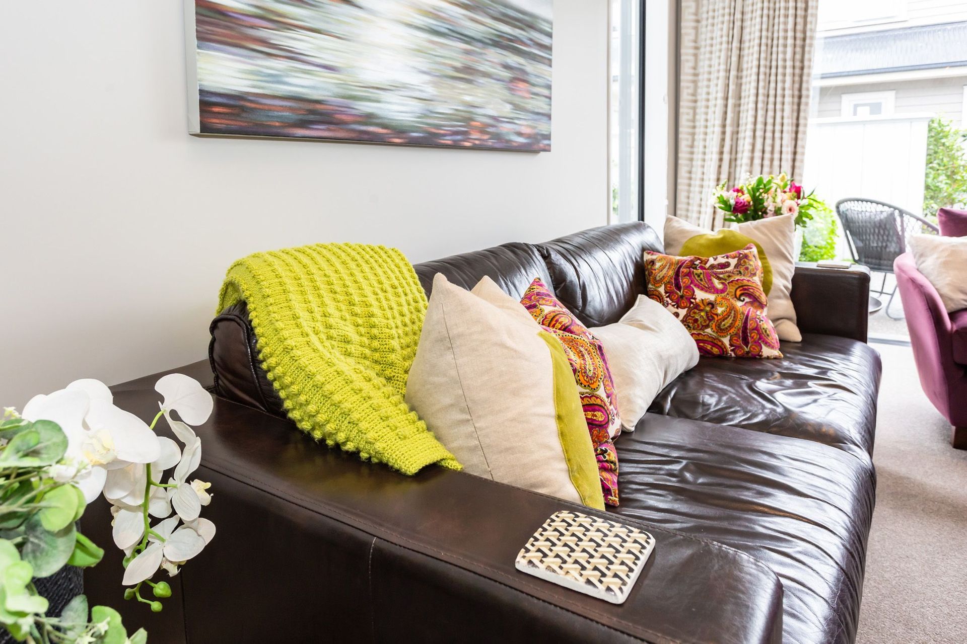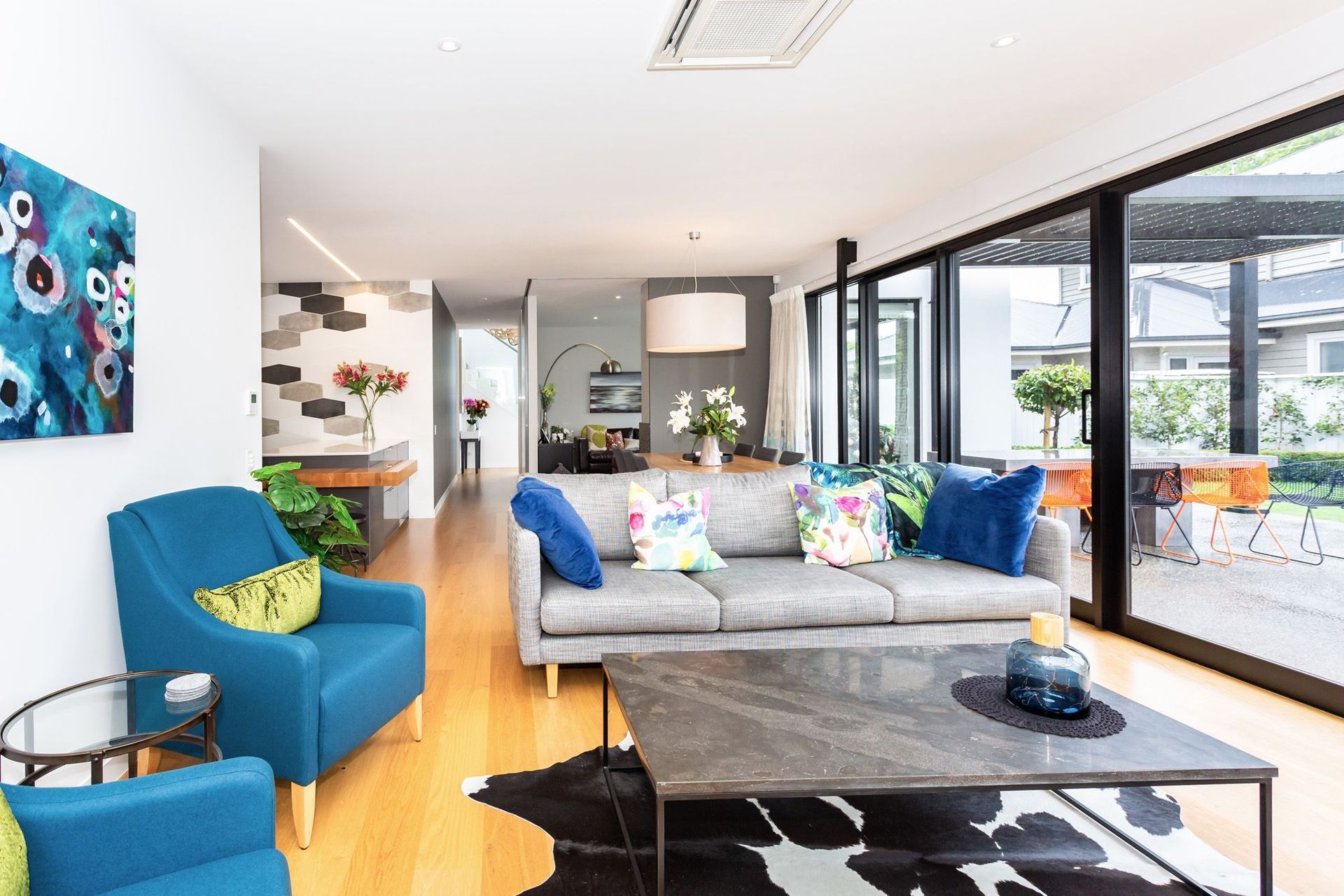 ArchiPro Project Summary - A vibrant and contemporary family home designed over two years, featuring carefully selected furniture, drapery, upholstery, and artwork to create cohesive and warm living spaces.