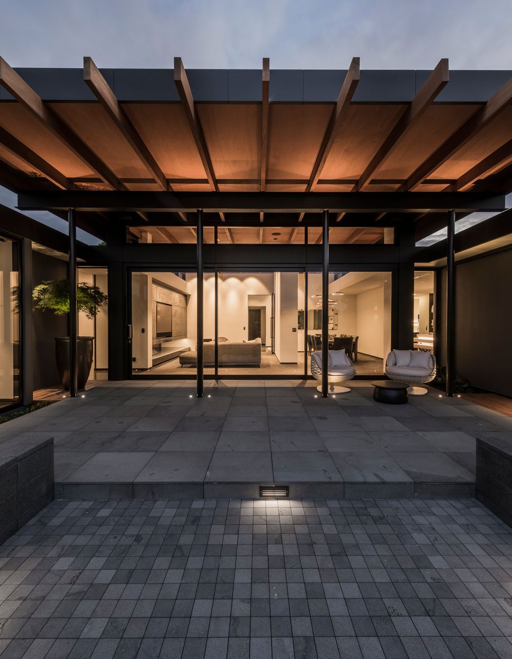 ArchiPro Project Summary - Elegant Fendalton House featuring stunning bluestone paving and stair treads, showcasing natural non-slip properties and a captivating interplay of light veining, color, and texture.