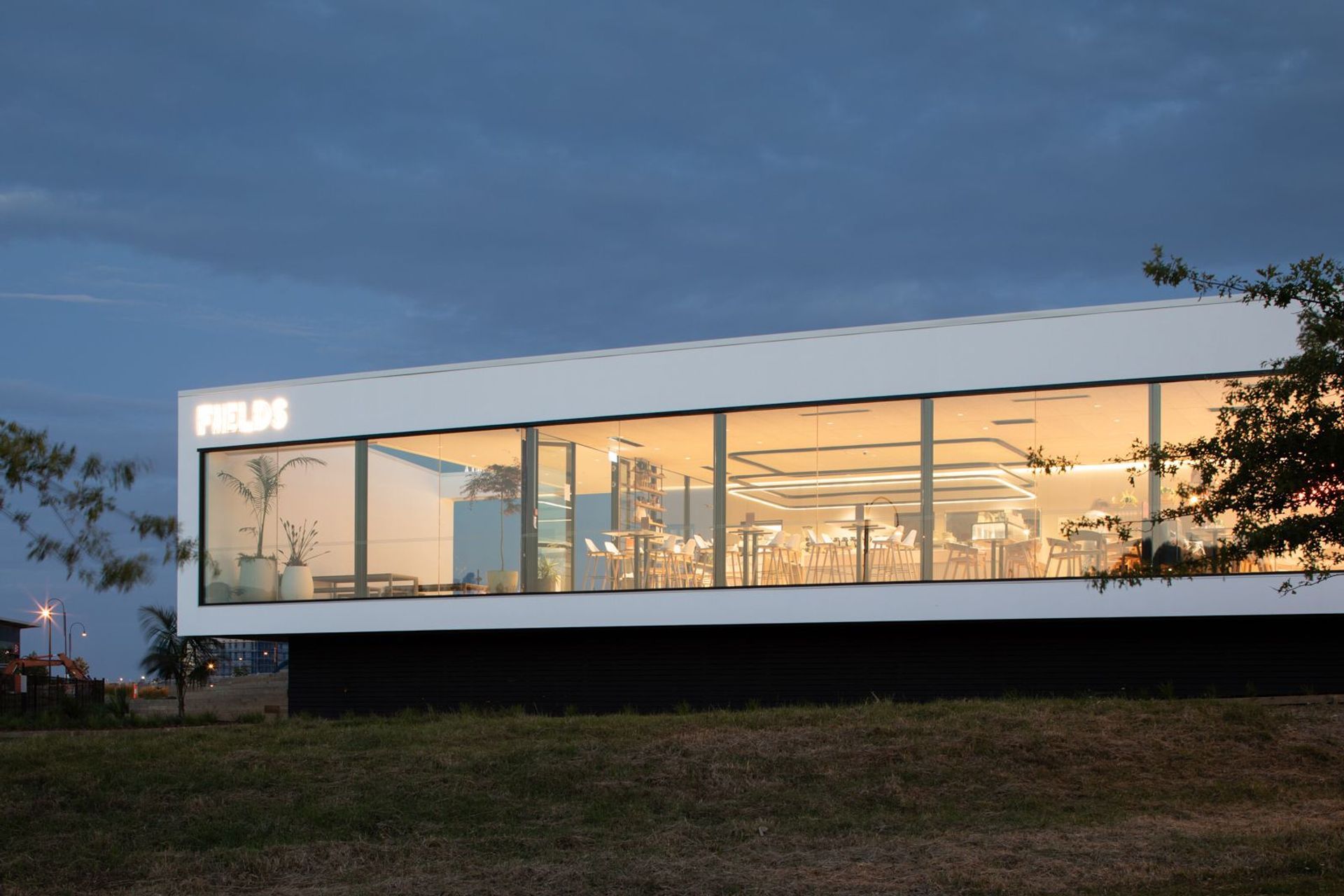 ArchiPro Project Summary - Fields Cafe features a contemporary design that emphasizes sustainability and community engagement.