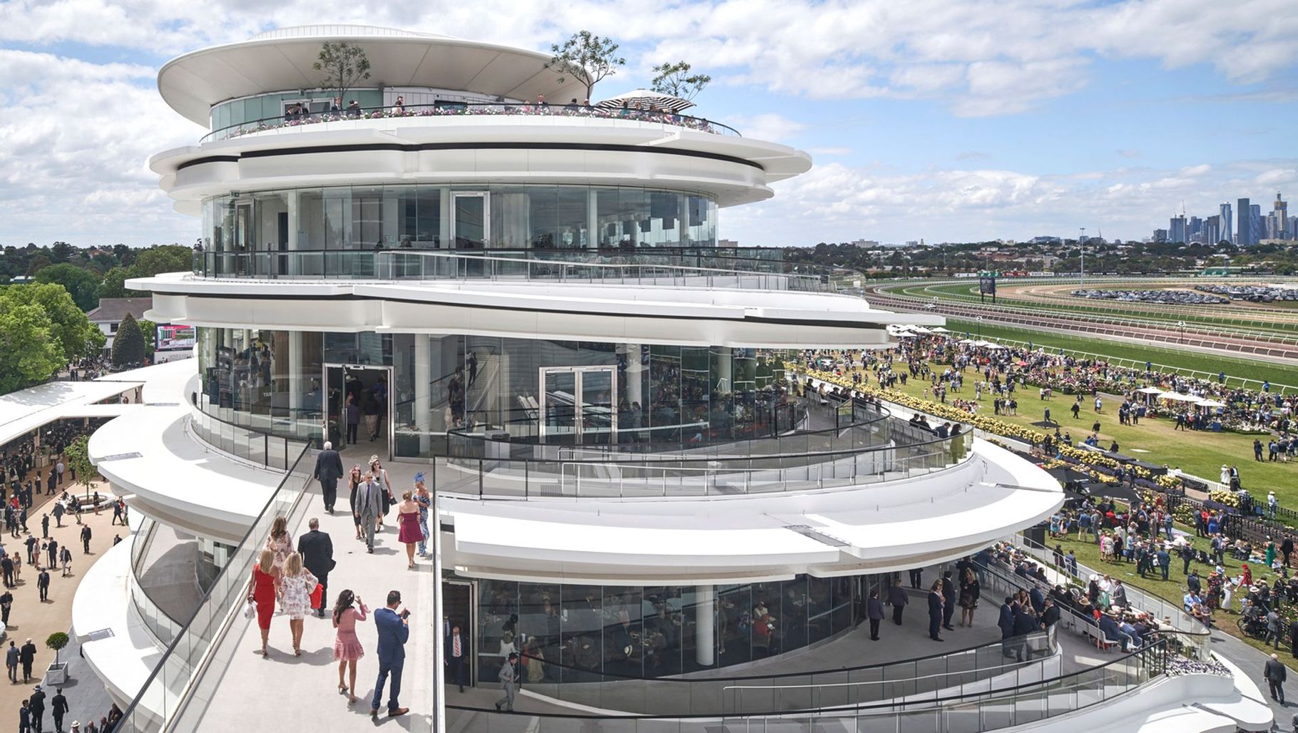 ArchiPro Project Summary - Landscape architectural commission for the Grandstand and Betting Ring at Flemington Racecourse, enhancing the venue's public realm with fluid transitions, soft lines, and a contemporary design that honors its heritage.