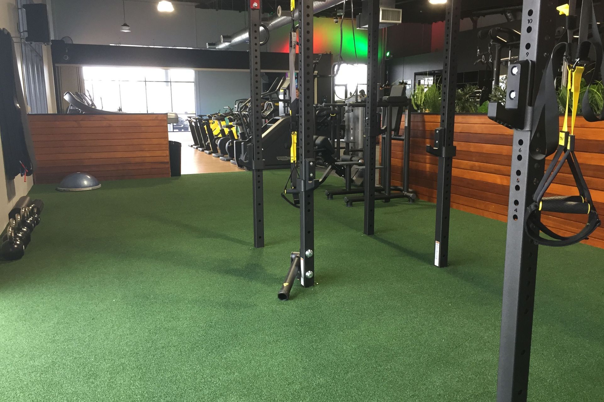ArchiPro Project Summary - Timely installation of TigerTurf WETT Pro surface at Flex Fit Gym ensures optimal training conditions for strength and conditioning, enhancing the gym's appeal and functionality ahead of its grand opening.