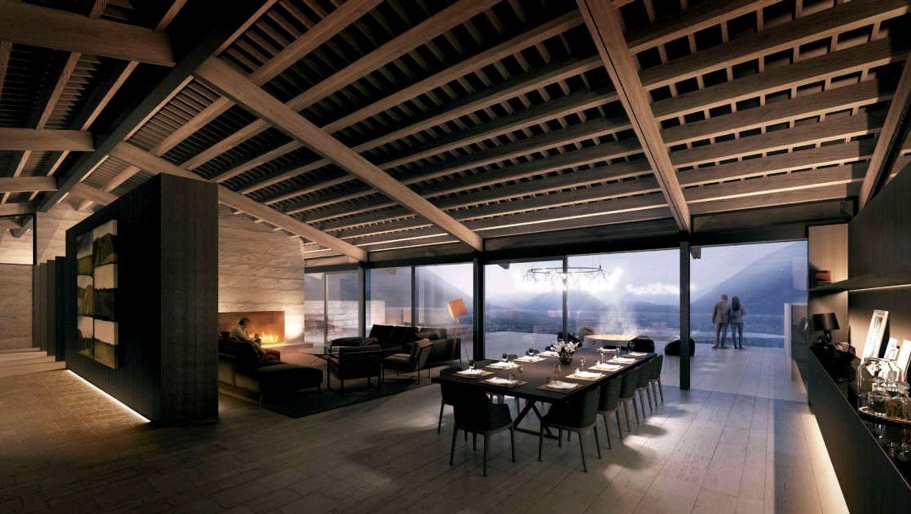 ArchiPro Project Summary - Flock Hill Lodge features advanced building services design, including a remote plant room and optimized mechanical systems, ensuring cost efficiency and architectural harmony with sustainable lighting and heating solutions.