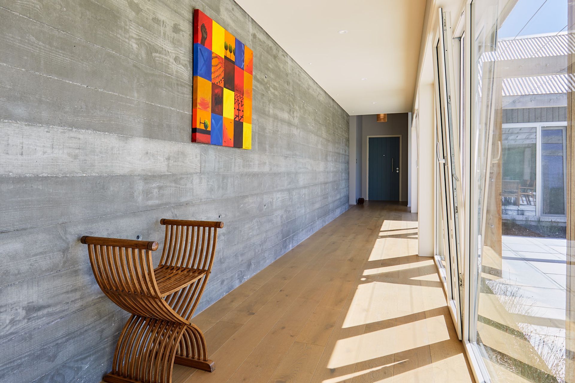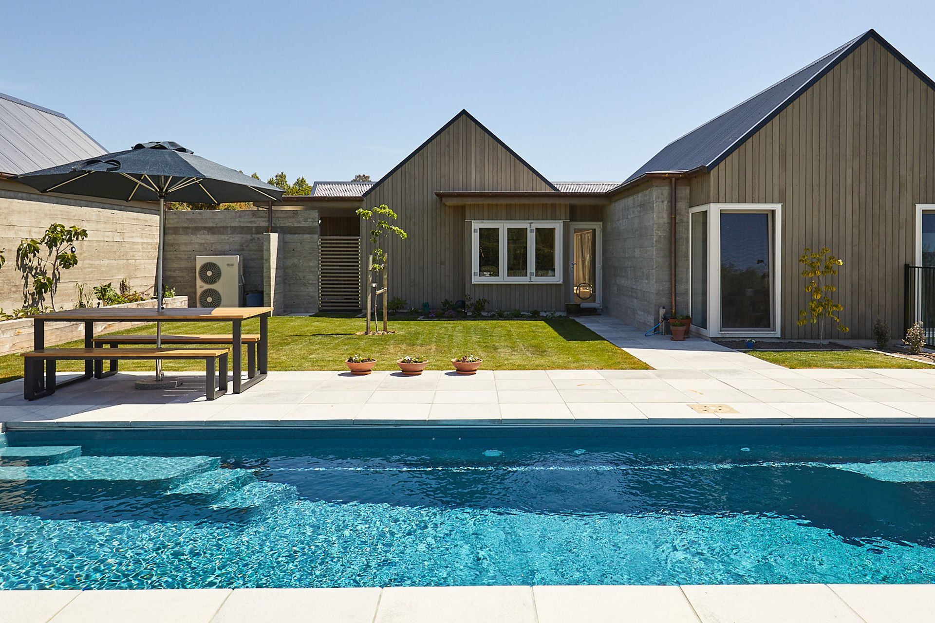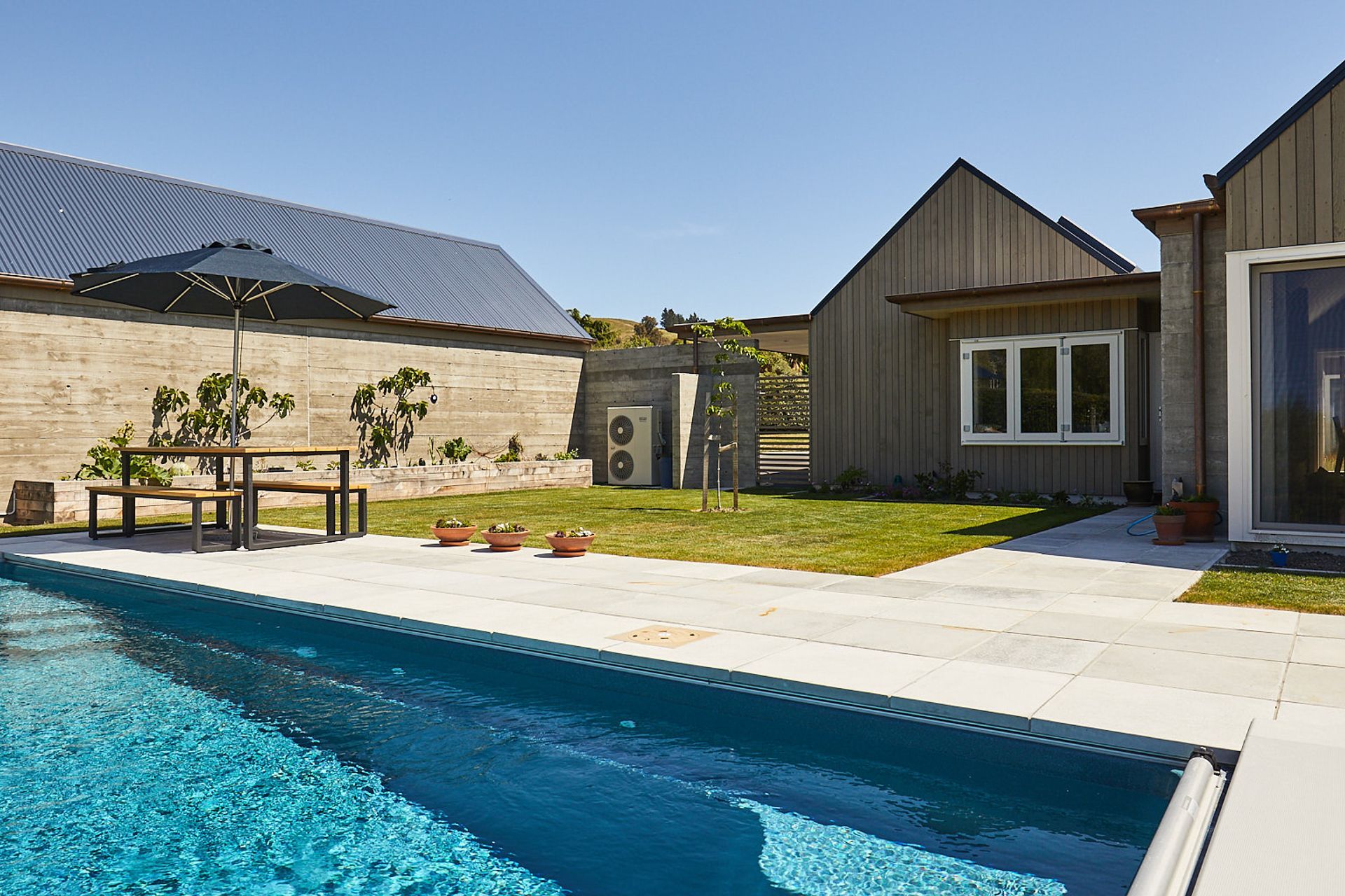 ArchiPro Project Summary - Sustainable Formance™ home in Blenheim featuring Structural Insulated Panels for superior insulation and energy efficiency, complemented by PVC Tilt and Turn Joinery and stunning Concrete Walls with Douglas Fir grain for a warm, inviting aesthetic.