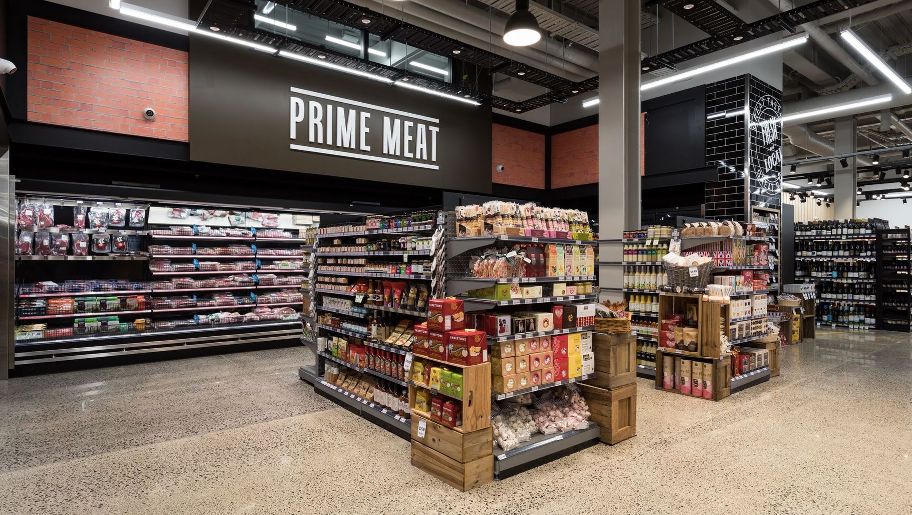ArchiPro Project Summary - Fresh Choice Supermarket Alexandra Park: A sophisticated industrial fitout completed in 2021, featuring a premium high-gloss exposed aggregate floor that combines aesthetics with durability, ensuring a hygienic and visually appealing shopping environment.