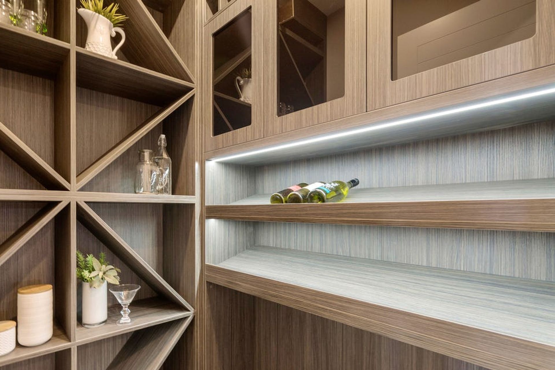 ArchiPro Project Summary - A unique residential project featuring custom glass cabinet doors with cross cutouts, completed in 2019, encompassing kitchen, scullery, wardrobe, laundry, vanity, and bar areas, showcasing innovative design and meticulous craftsmanship.