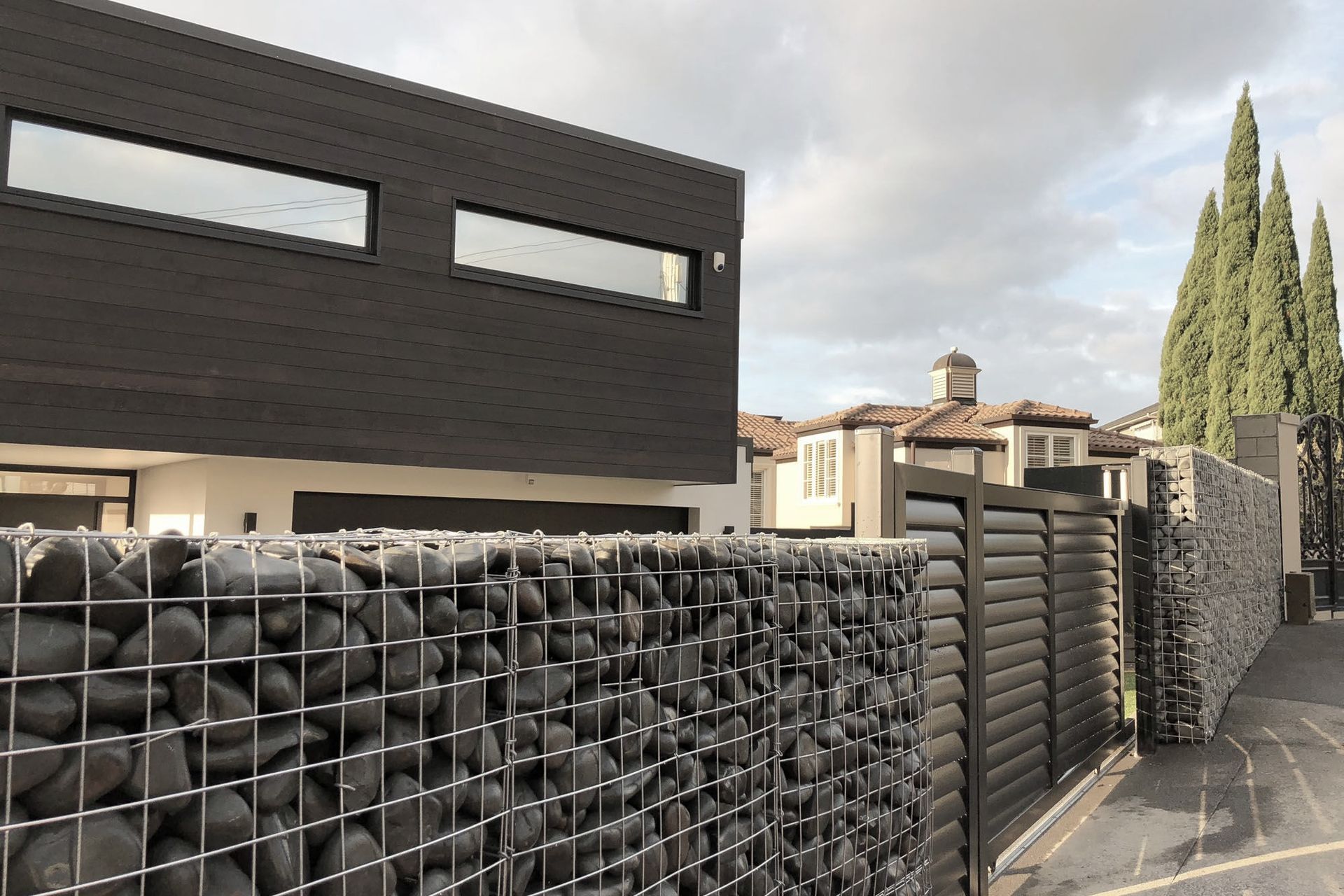 ArchiPro Project Summary - Innovative Gabion Project offering a modern alternative to traditional fencing, featuring customizable materials such as round river stones, bricks, and gabion rock to enhance architectural aesthetics in Auckland.