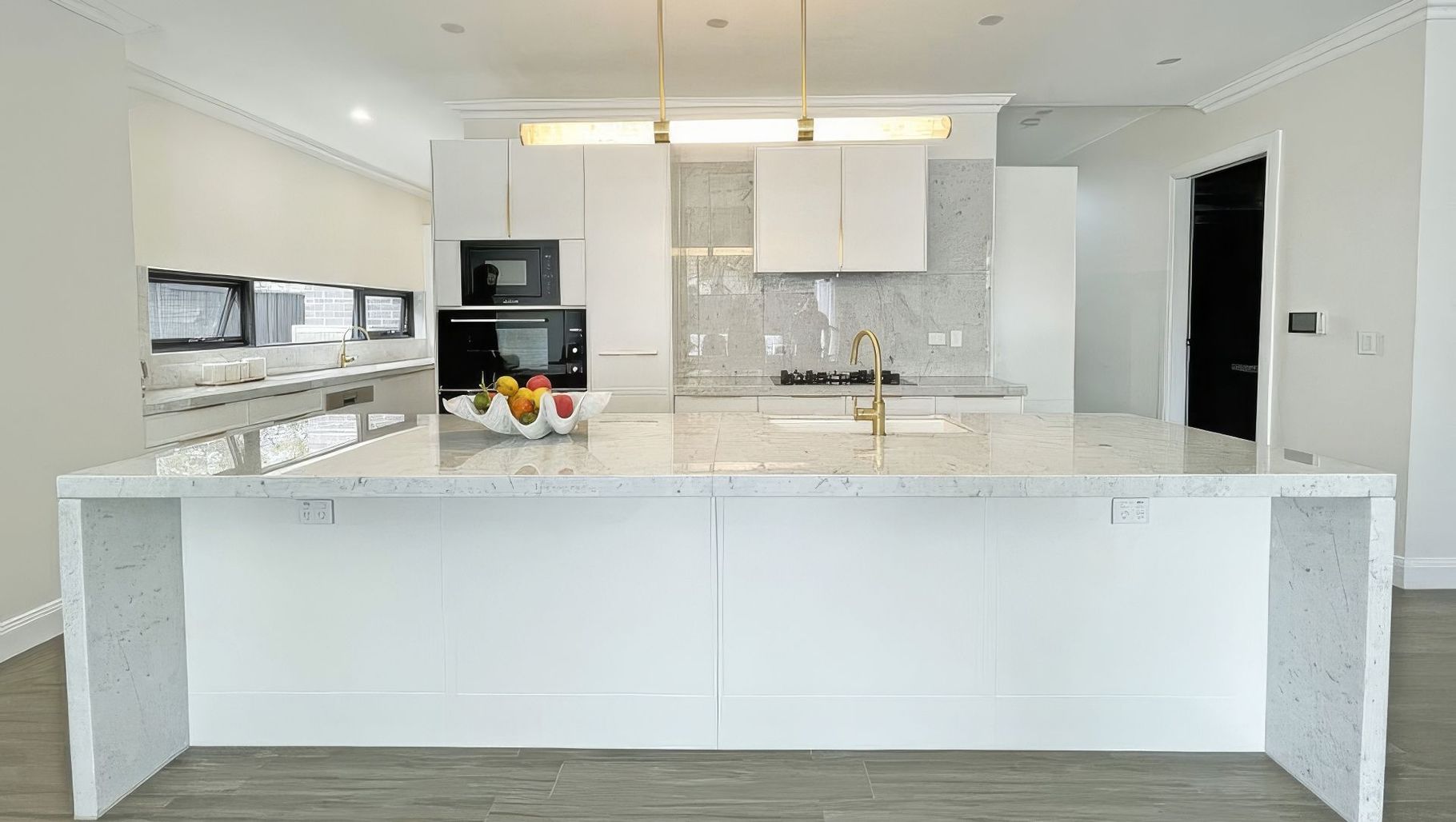 ArchiPro Project Summary - Elegant two-story residence in Gladesville featuring a stylish kitchen, butler kitchen, and custom Shaker-style doors with brass accents, completed in 2020.