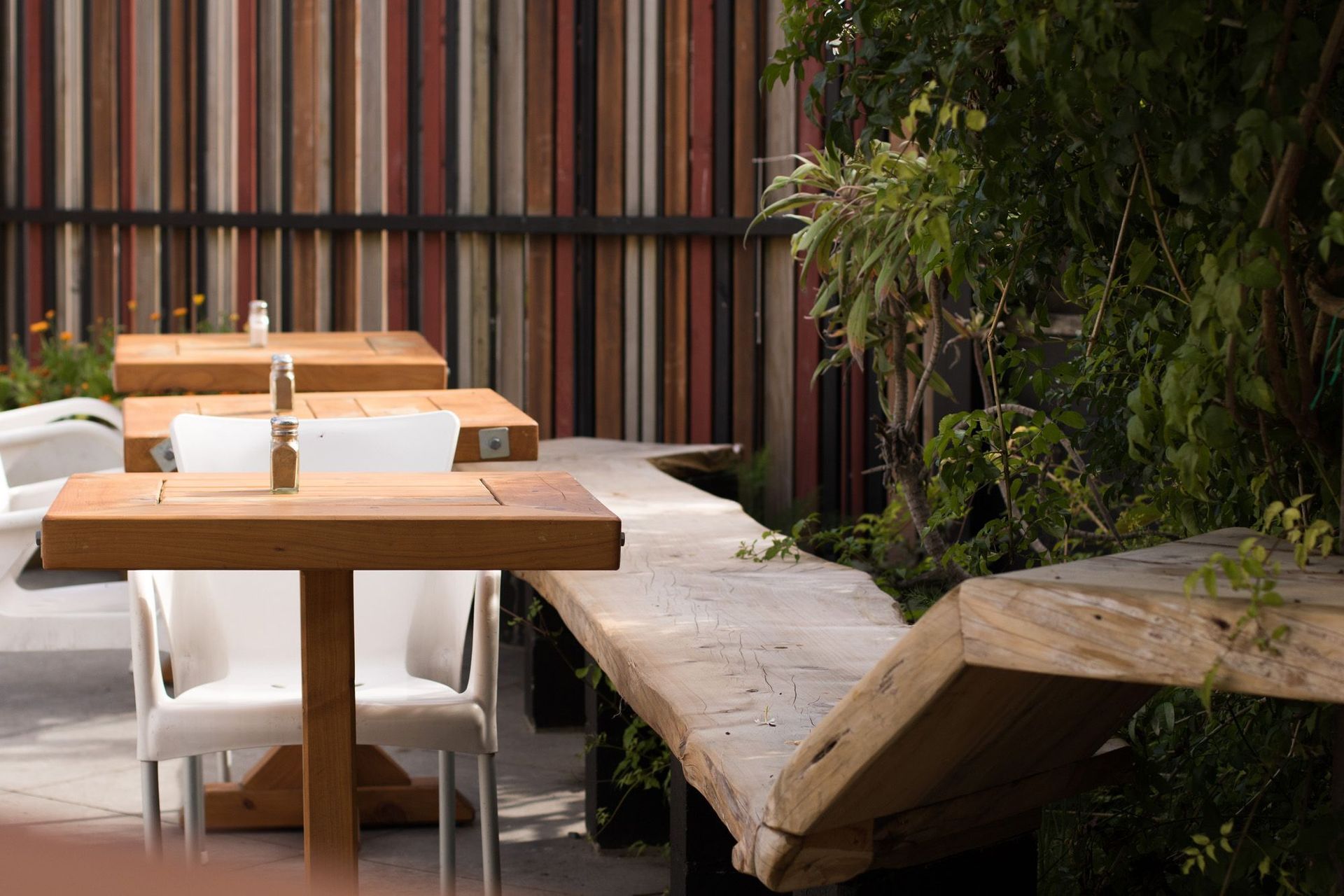 ArchiPro Project Summary - A beautifully designed garden bar at Waikanae beach, featuring an outdoor fire, heated concrete seating, and bespoke hardwood tables, creating an inviting sun-drenched space perfect for leisurely afternoons and intimate evenings.
