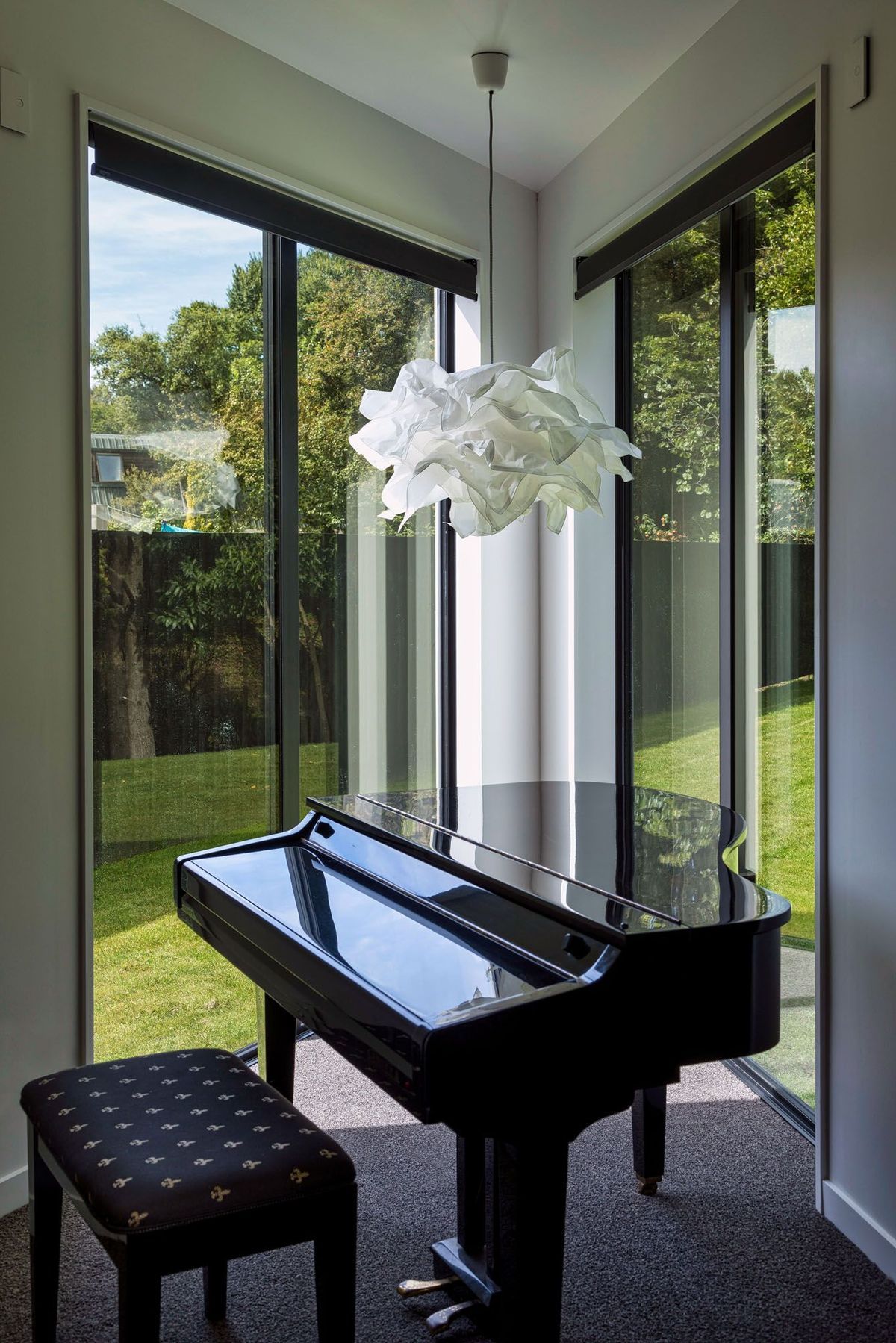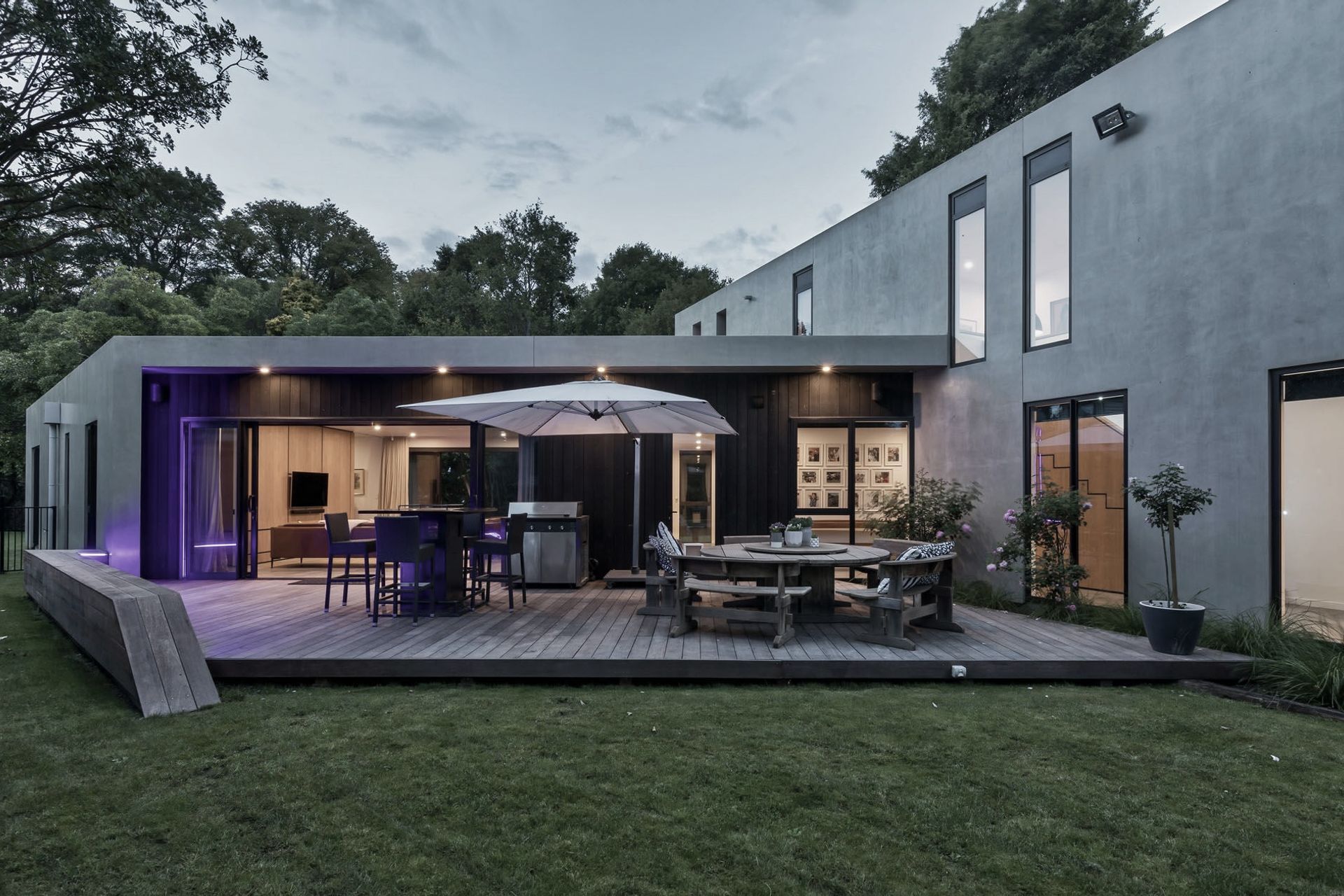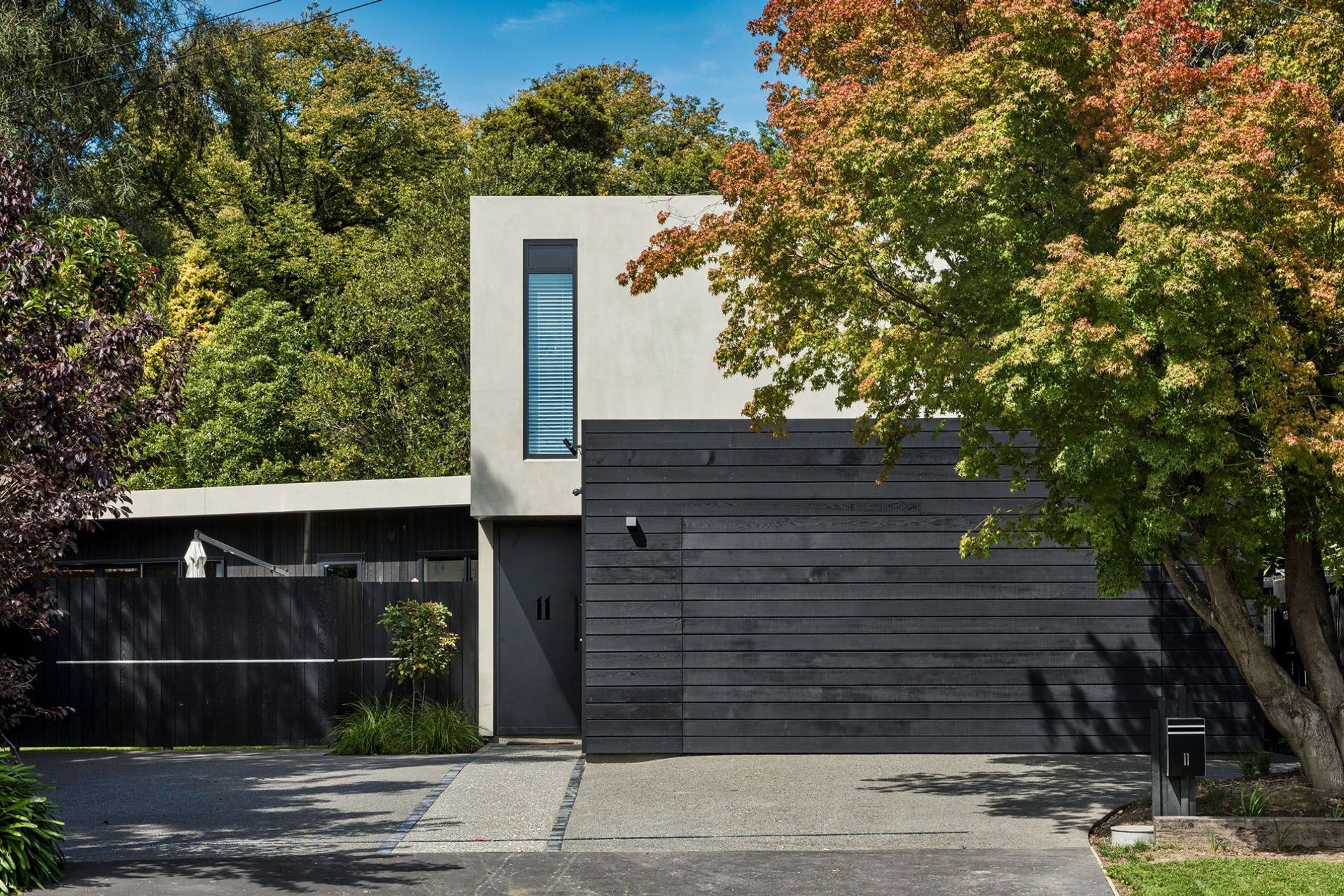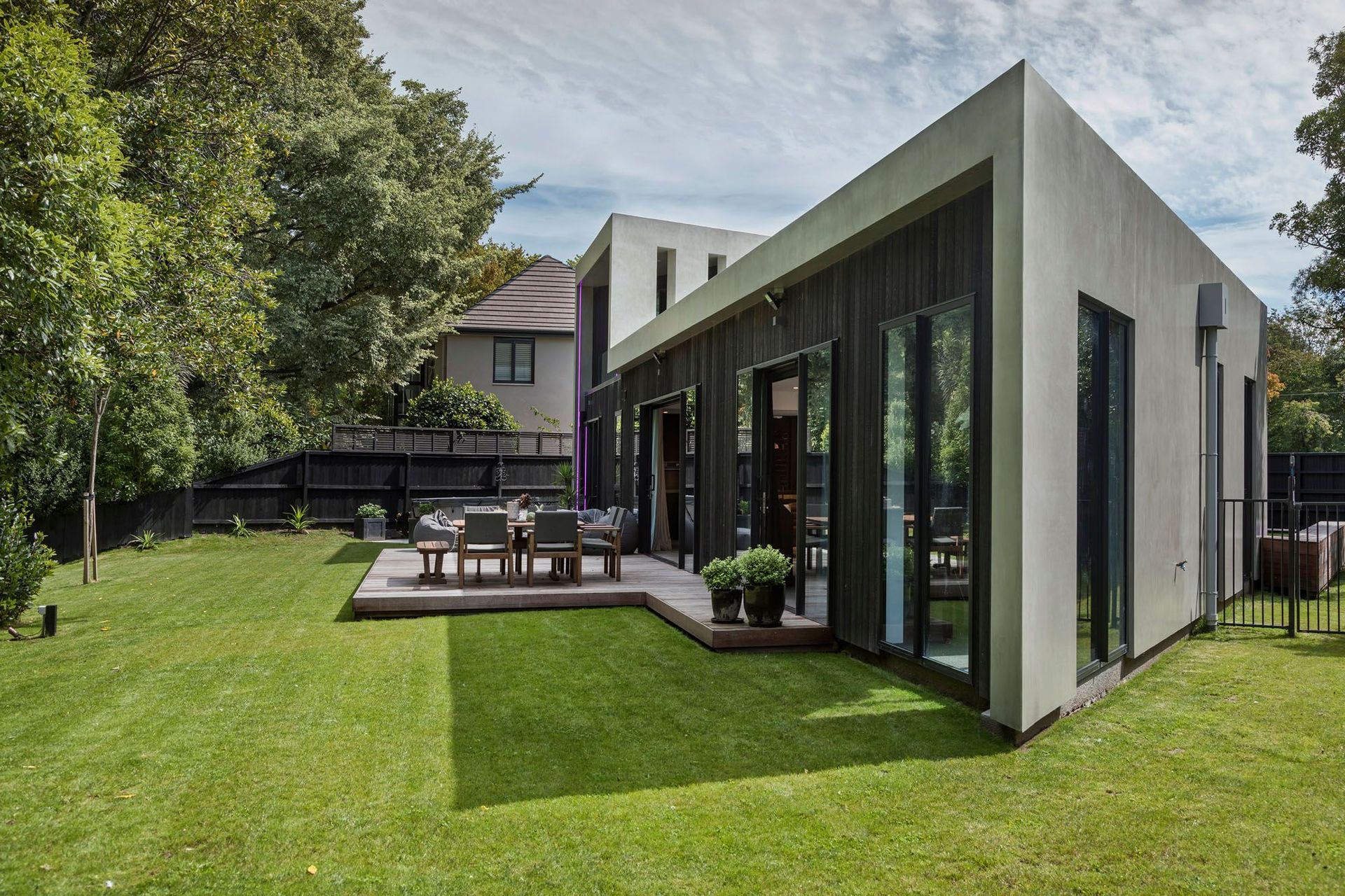ArchiPro Project Summary - A thoughtfully designed two-level family home replacing an earthquake-damaged structure, maximizing stunning views of the Avon River and Riccarton House while seamlessly connecting the Eastern terrace and Western courtyard.