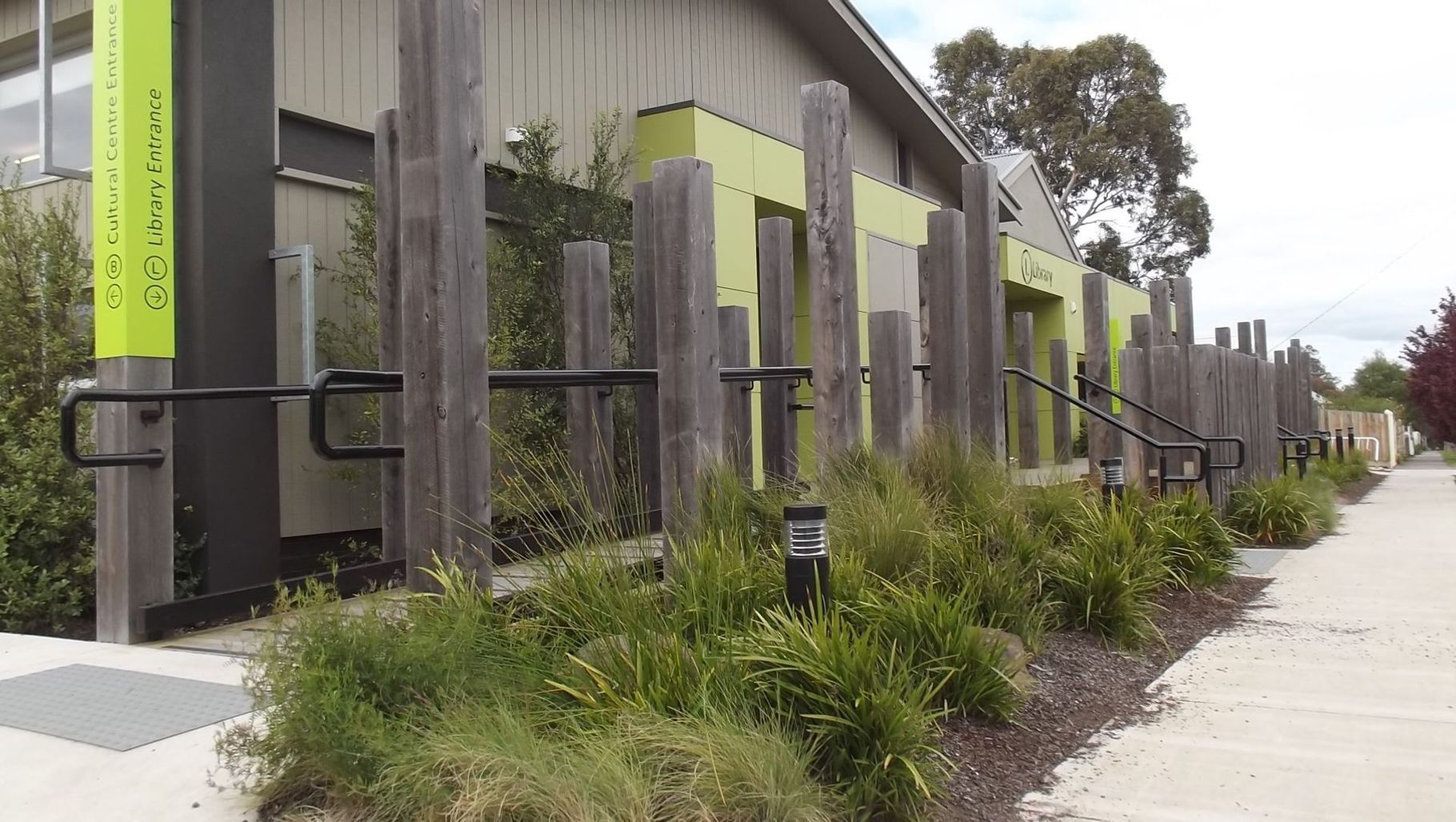 ArchiPro Project Summary - Bannockburn Hub: A community facility featuring a library, meeting rooms, hall, and offices, enhanced by a thoughtfully designed landscape using local indigenous plants and materials, ensuring durability and aesthetic appeal.