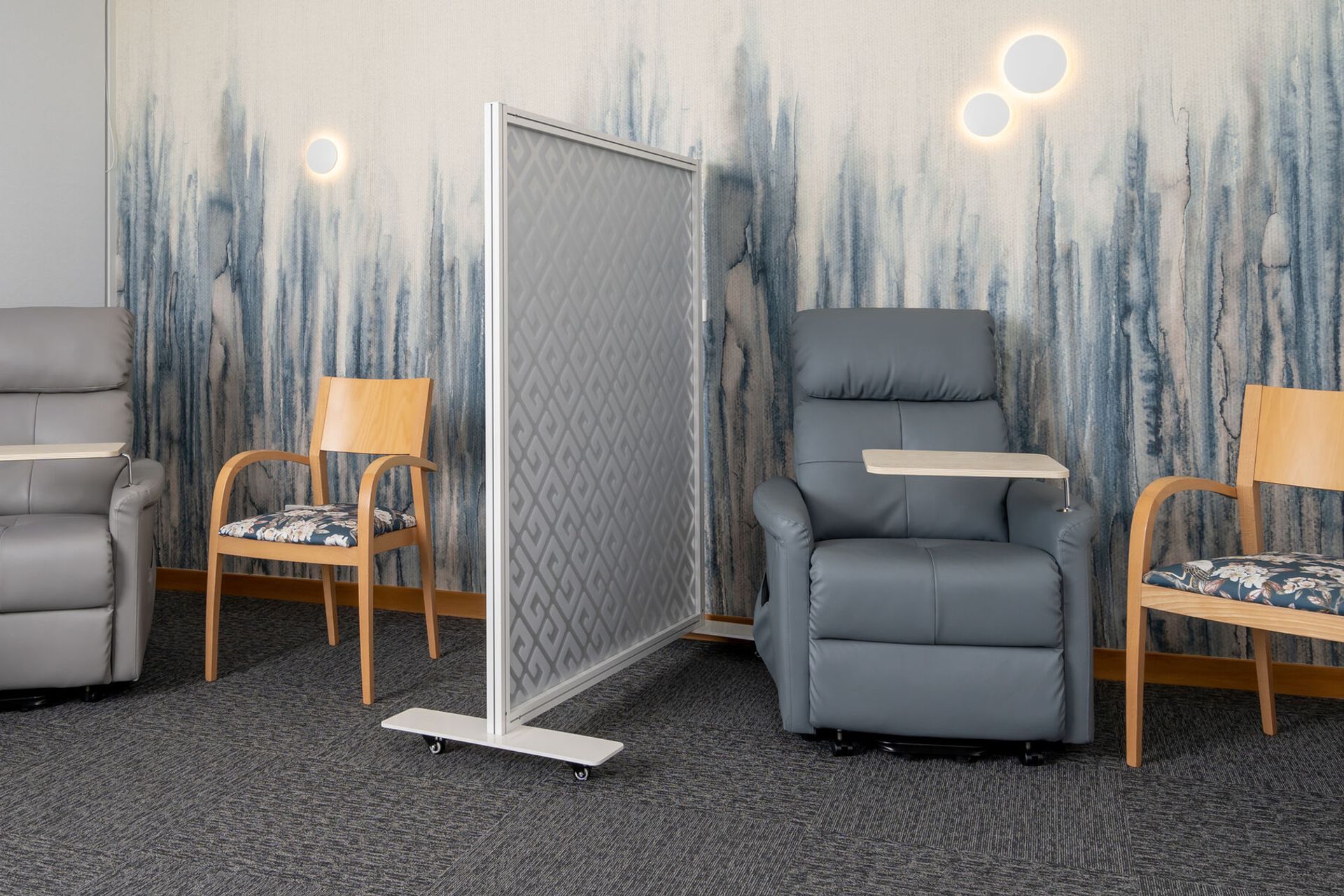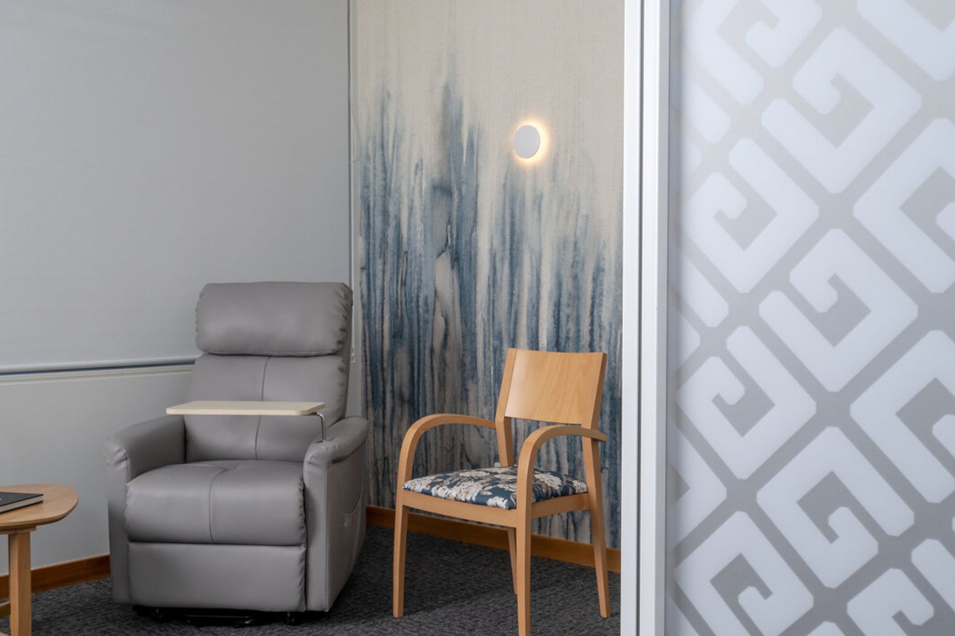 ArchiPro Project Summary - Grace Hospital Day Recovery: A thoughtfully designed space that balances practicality and comfort, featuring custom-built privacy screens and a calming color palette to enhance the recovery experience for patients post-surgery.