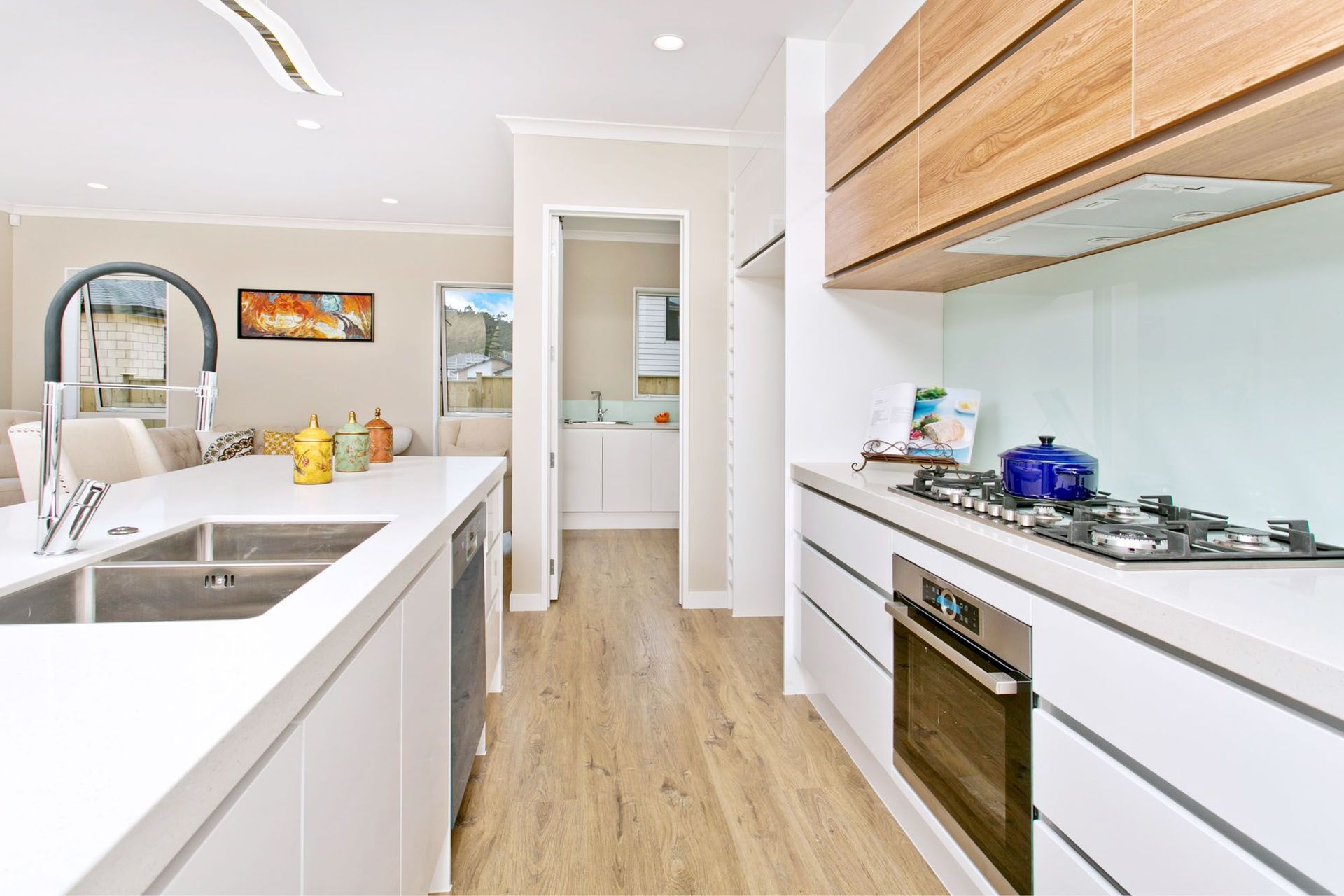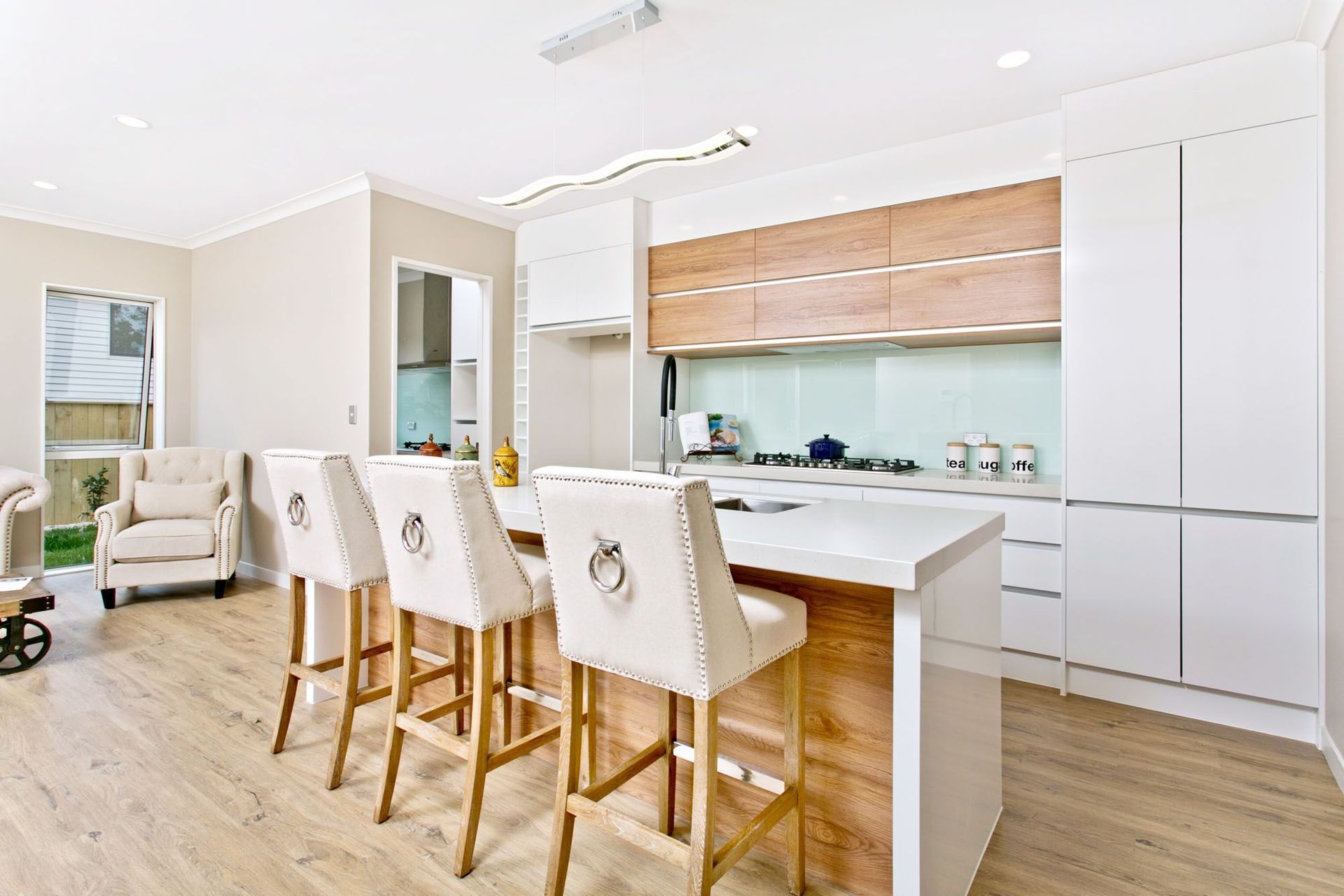 ArchiPro Project Summary - Custom kitchen design and build featuring solid marble bench, Fisher and Paykel appliances, oak flooring, and handle-less cabinetry, completed in 6 weeks by Superior Renovations in Greenhithe, North Shore.
