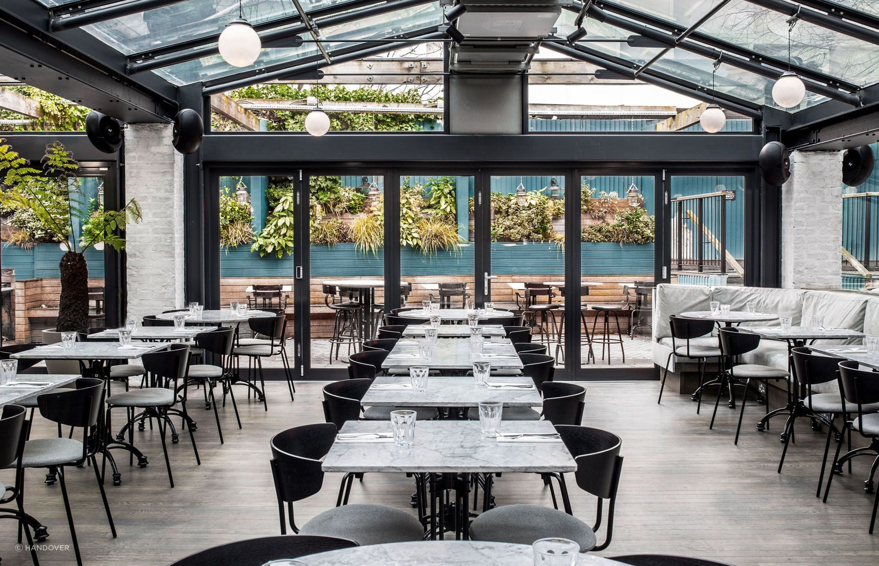 ArchiPro Project Summary - Greenwich Grind: A vibrant all-day venue in Greenwich, London, blending contemporary design with heritage elements, featuring a grab-and-go deli, an intimate cocktail bar, and a main dining area that opens to a lush alfresco space.