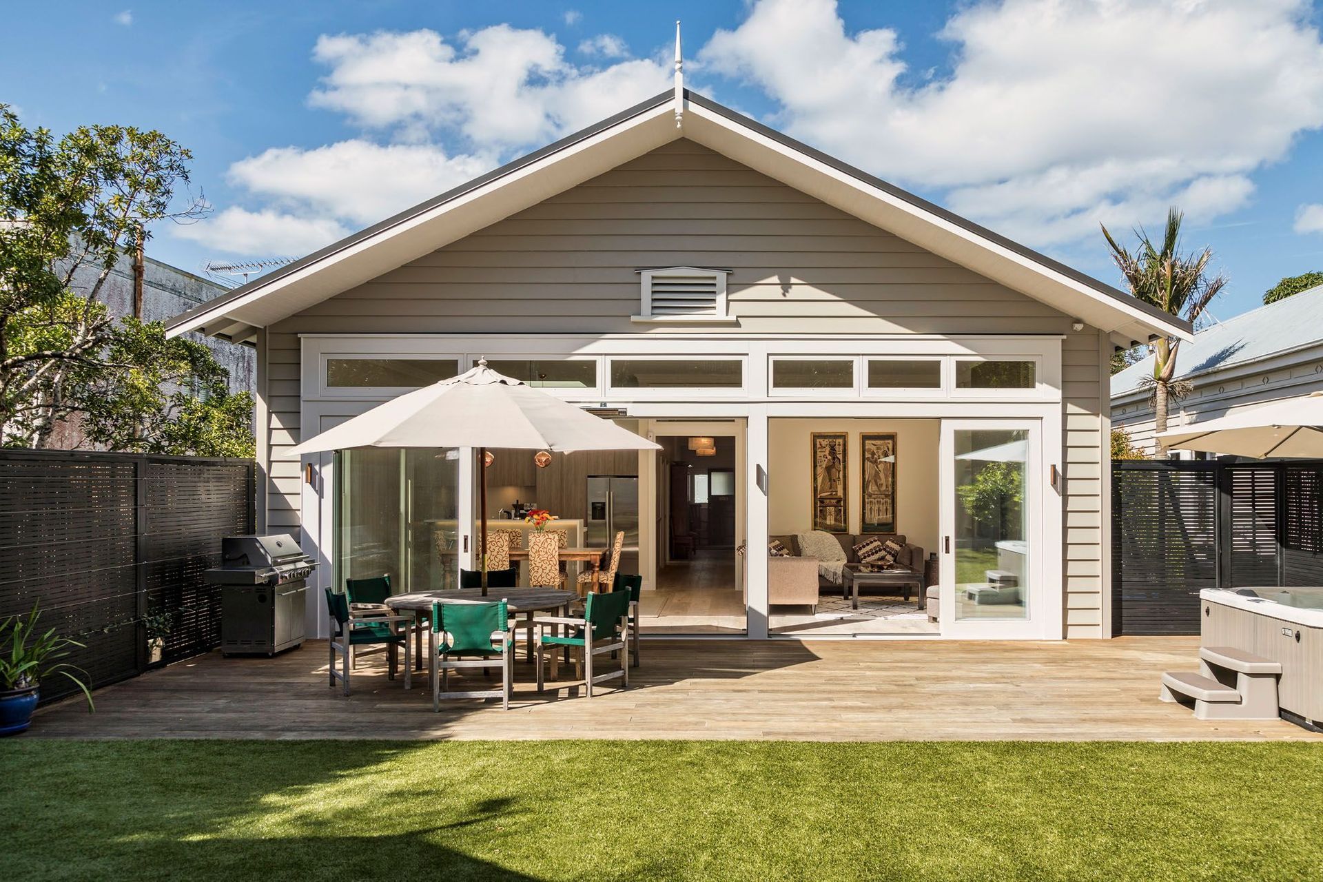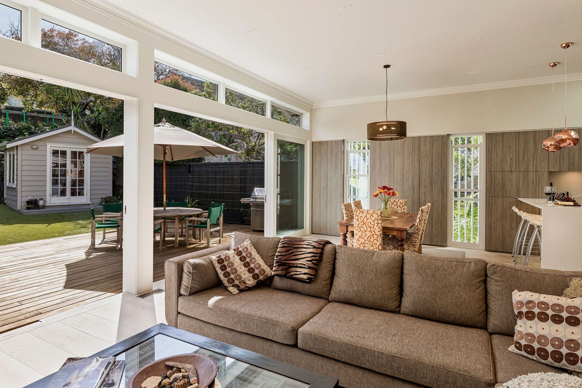 ArchiPro Project Summary - Thoughtfully renovated Grey Lynn villa featuring a modern rear extension, open plan kitchen and living area, and updated interiors, providing additional space for a growing family while preserving traditional architectural elements.