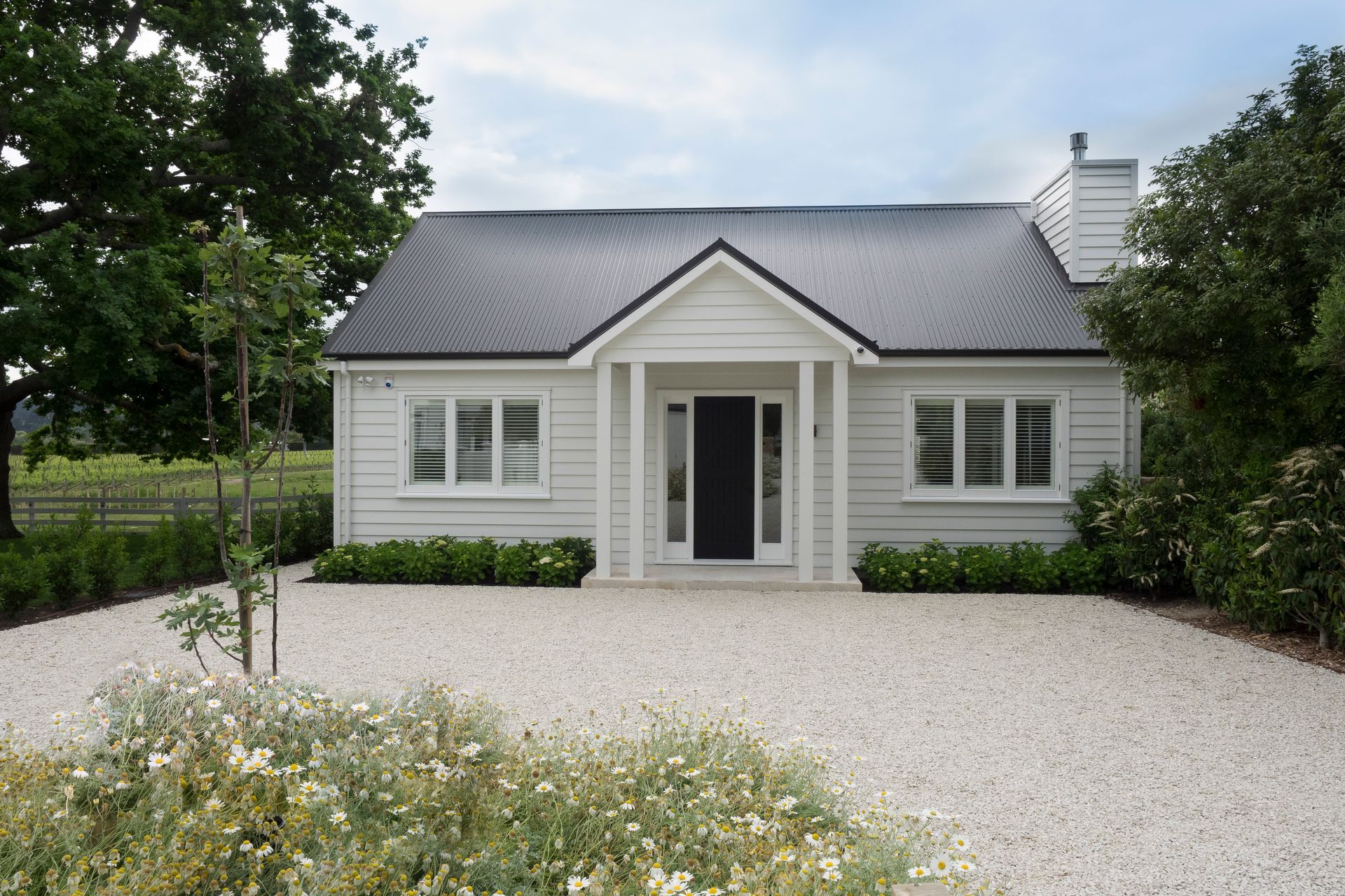 ArchiPro Project Summary - A tranquil guest cottage retreat nestled among vineyards, featuring a calming interior design with tonal colors, high contrast elements, and a blend of metals and textures for a serene and inviting atmosphere.
