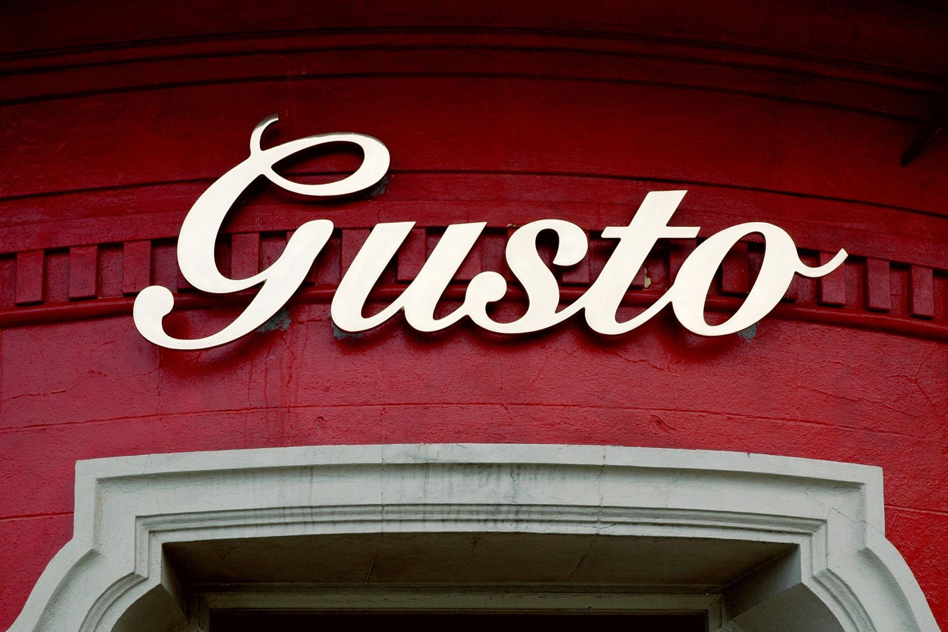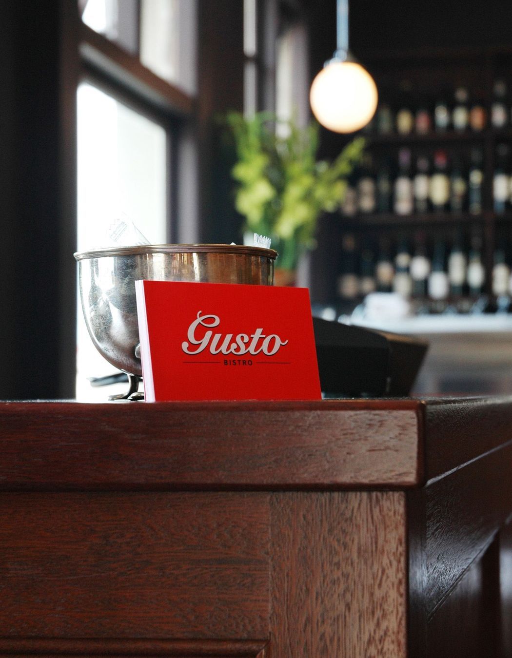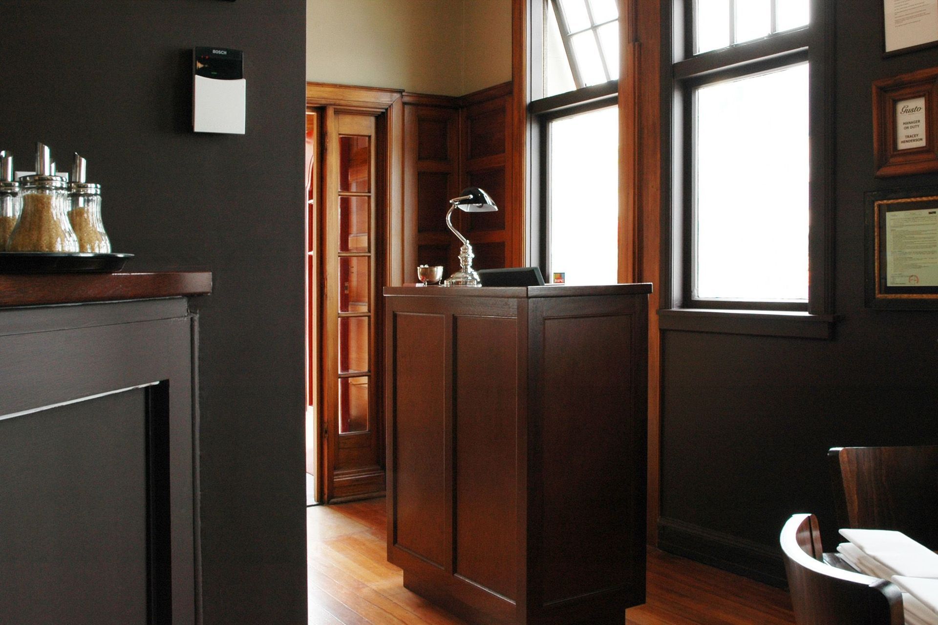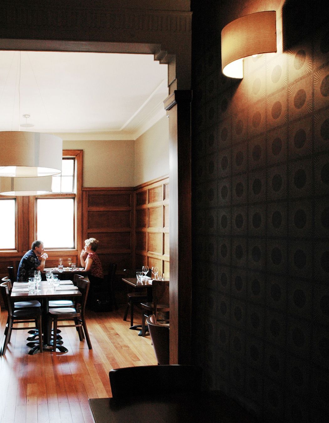 ArchiPro Project Summary - Historic restoration of Gusto Bistro, blending original features with contemporary design elements, featuring a rich colour palette and award-winning interiors.