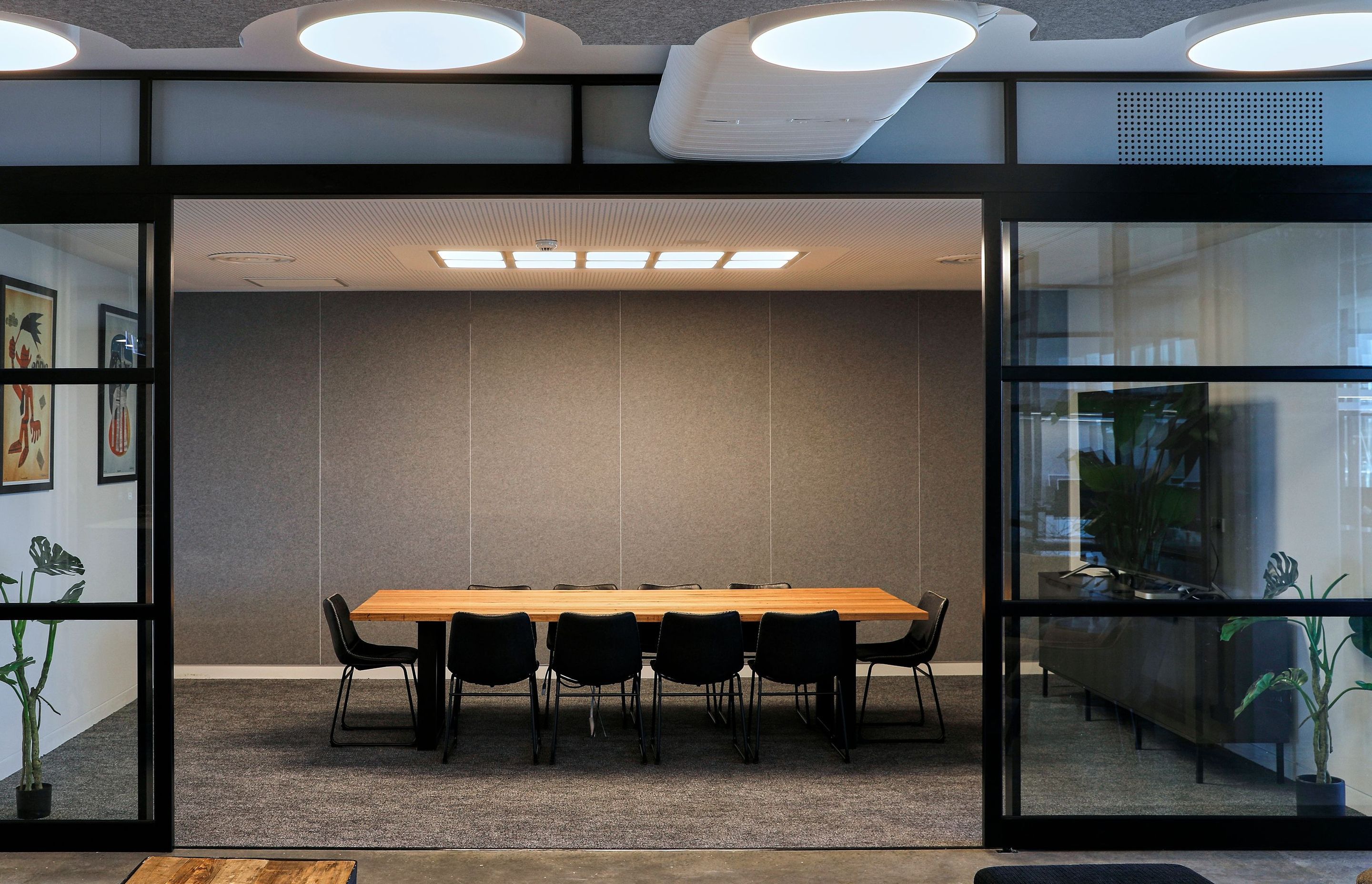 Expansive commercial fit-out across five floors, featuring collaborative spaces, private offices, and a luxurious rooftop bar, designed to foster connections among seven diverse companies while maintaining a cohesive design language.