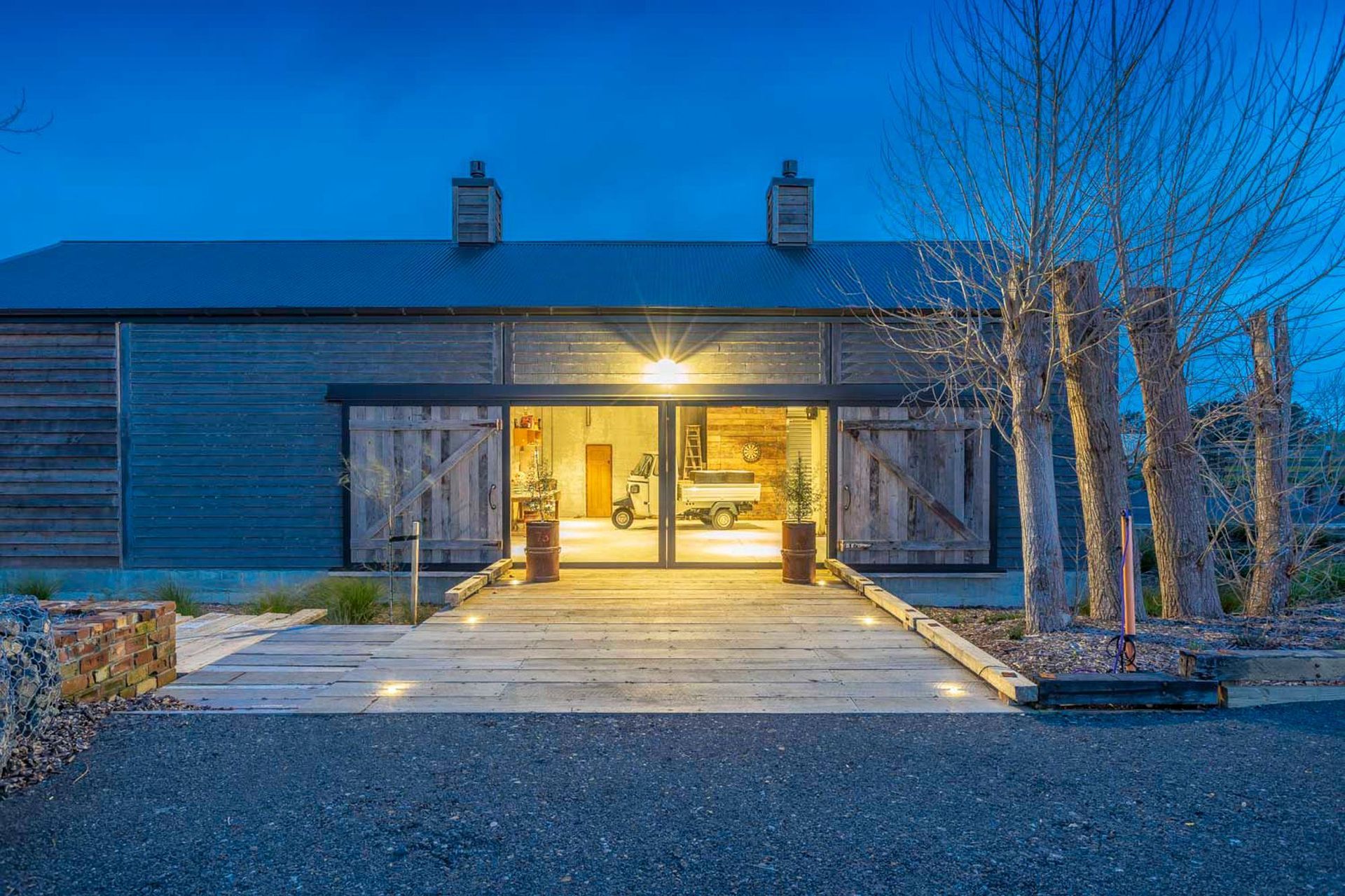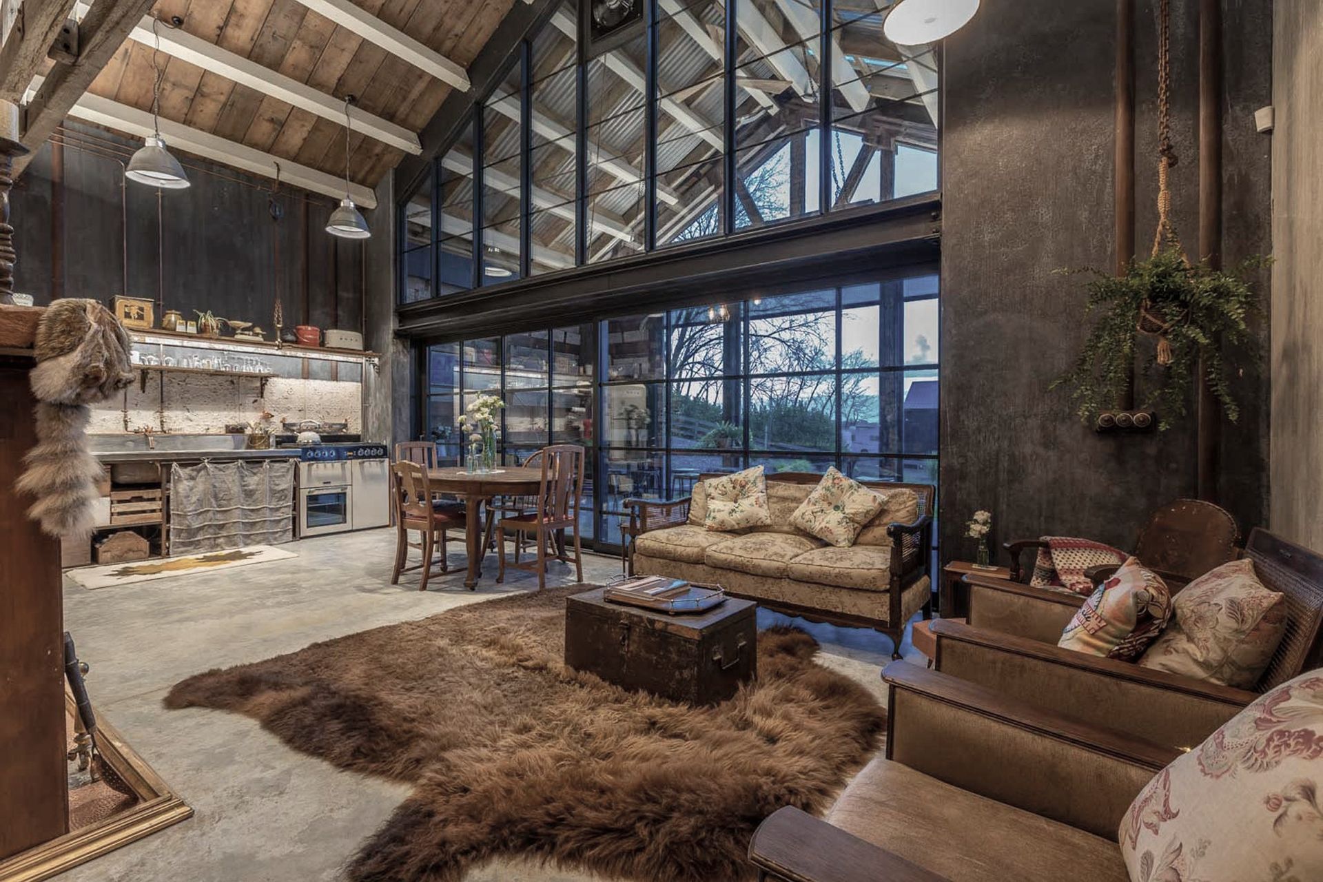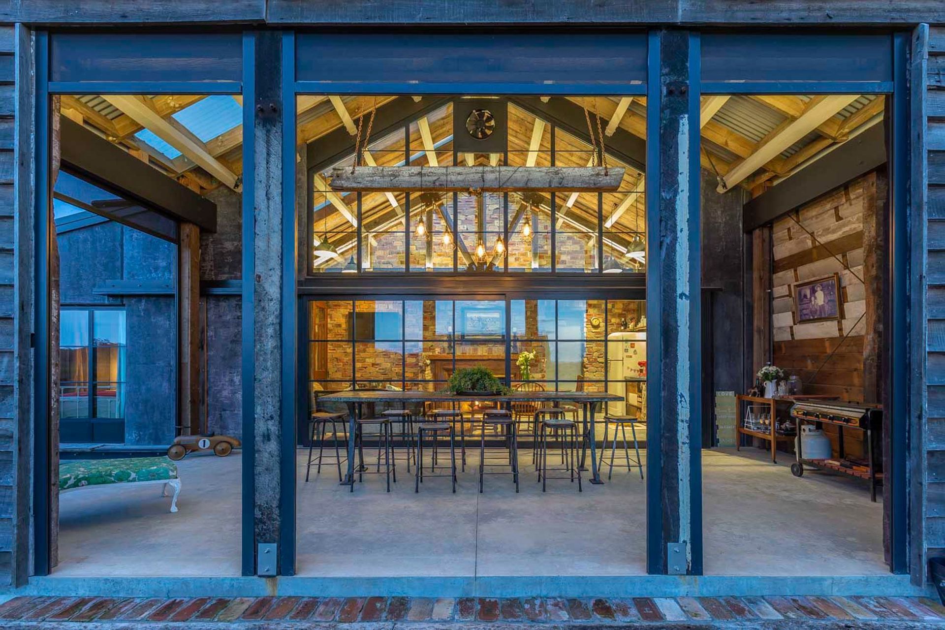 ArchiPro Project Summary - A retro-fitted industrial retreat featuring precast panel construction, recycled materials, and a seamless blend of vintage and modern elements, designed for relaxation and motorsport-related activities.