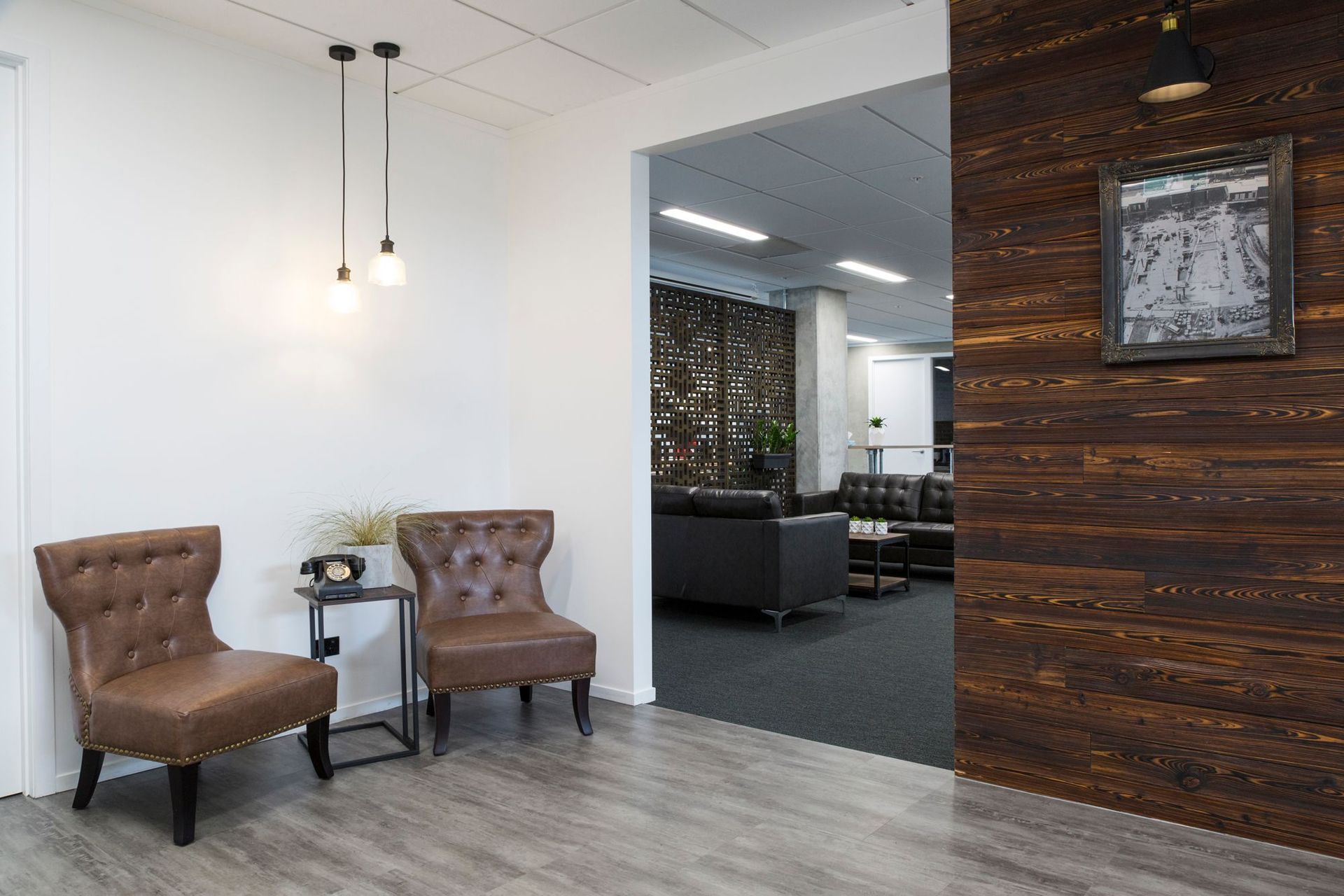 ArchiPro Project Summary - The Harcourts project features modern architecture with hardwood flooring, elegant ceilings, and stylish light fixtures, creating a warm and inviting atmosphere.