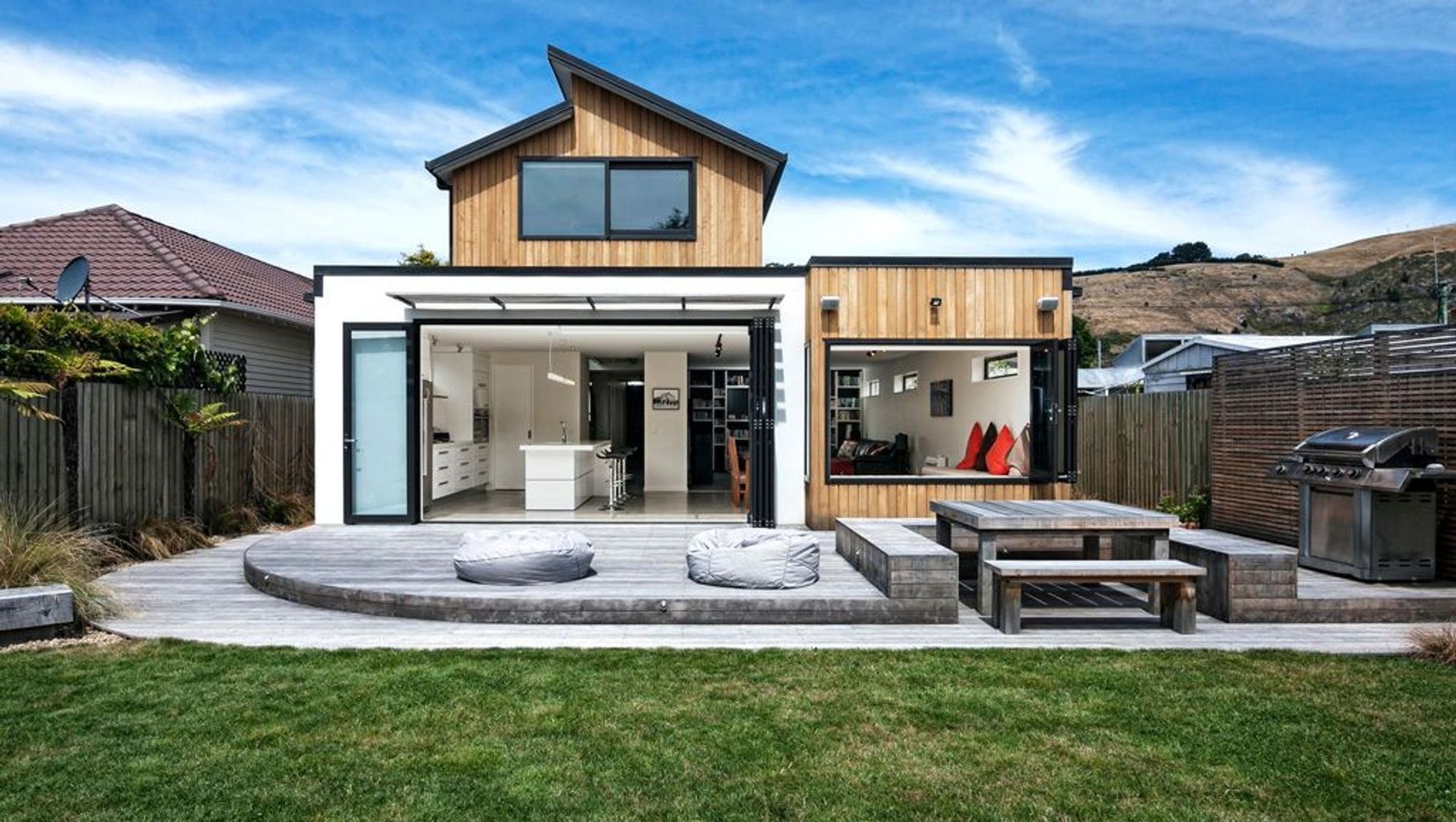 ArchiPro Project Summary - Hardwicke St: A modern family home at Sumner Beach, designed with sustainable features and natural materials for low energy consumption and a relaxed living environment.