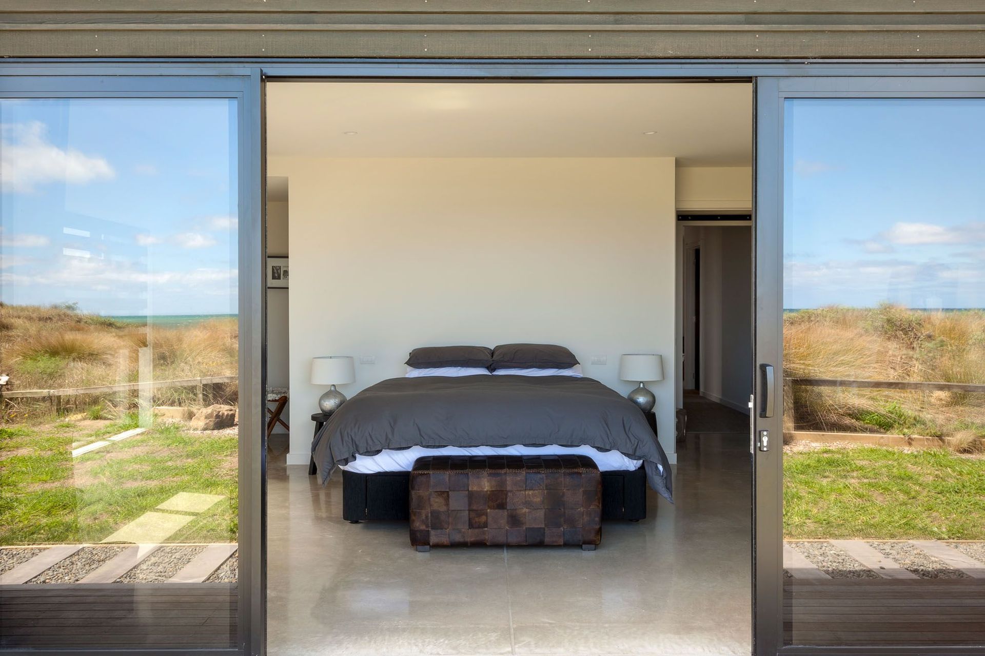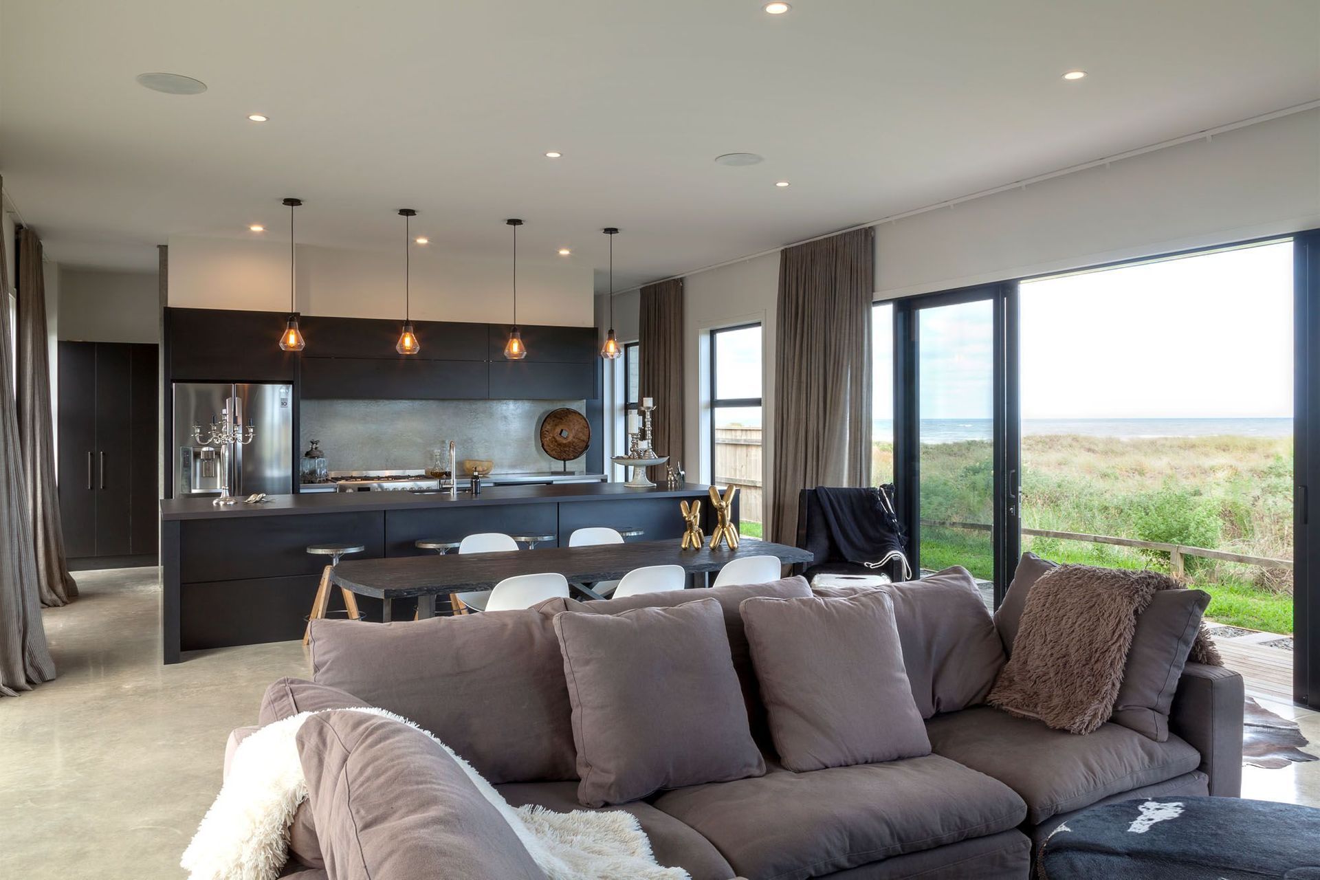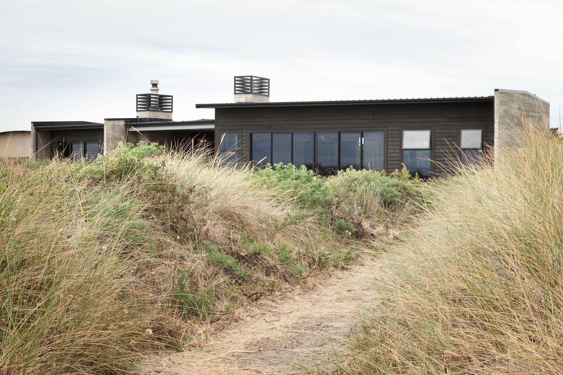ArchiPro Project Summary - A sophisticated kiwi hideaway at Waitarere Beach, designed for privacy and comfort, harmonizing with the rugged landscape while maximizing natural beauty and low maintenance finishes.