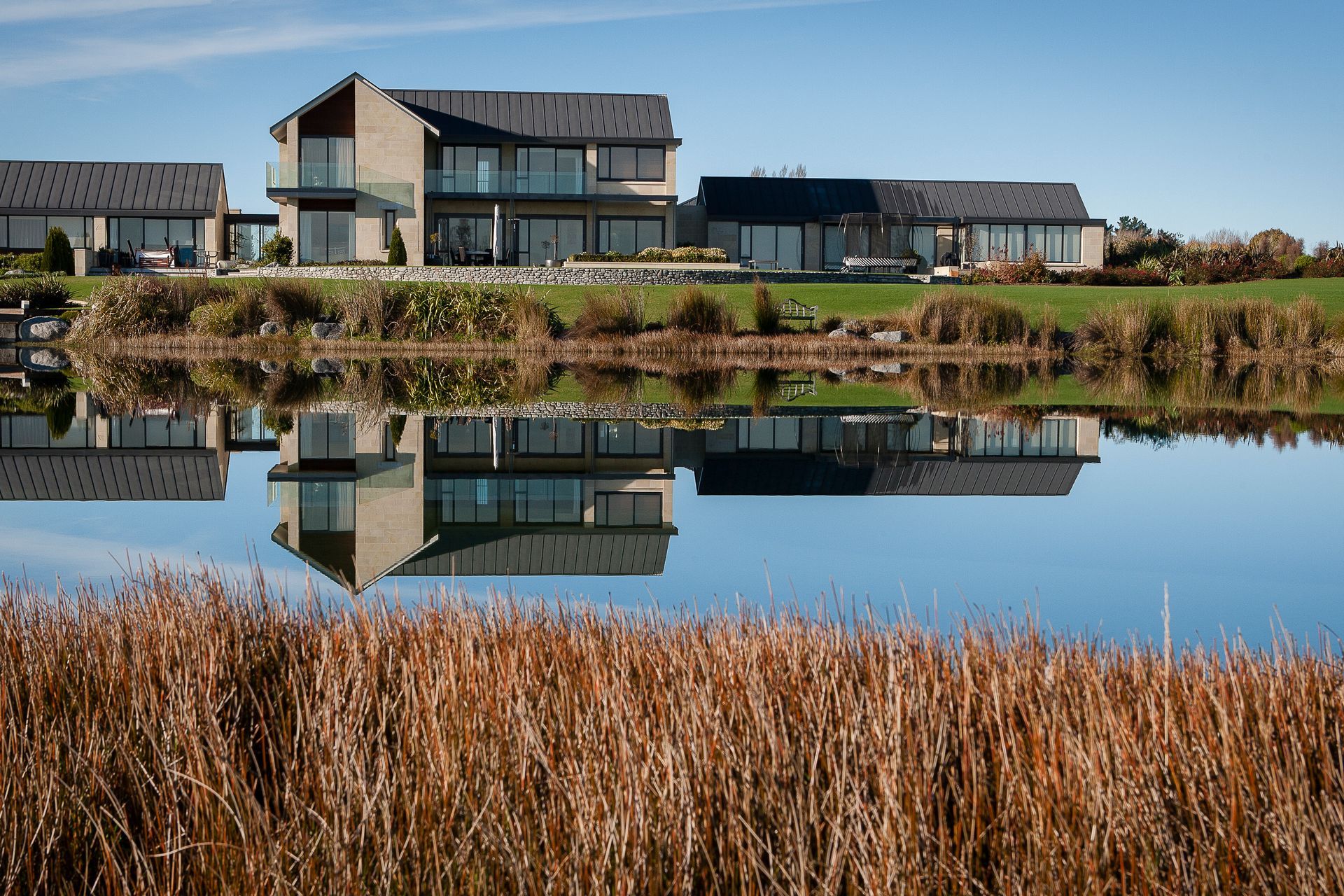 ArchiPro Project Summary - A stunning lake-front residence at Clearwater Golf Resort, featuring a central two-storey core, single-storey wings, and a focus on energy efficiency, Feng Shui principles, and luxurious materials for extended family living.