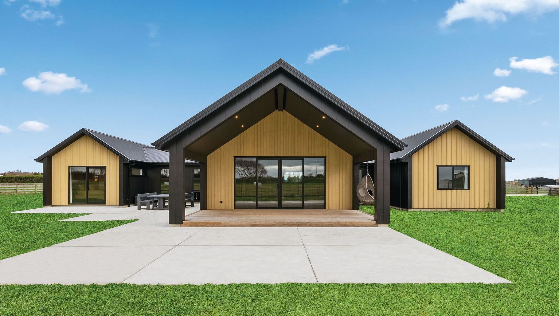 ArchiPro Project Summary - A modern 297 sqm family home featuring a striking blend of New Zealand timber and sleek black cladding, completed in 2022, designed for comfort and elegance with a welcoming main pavilion and luxurious interior spaces.