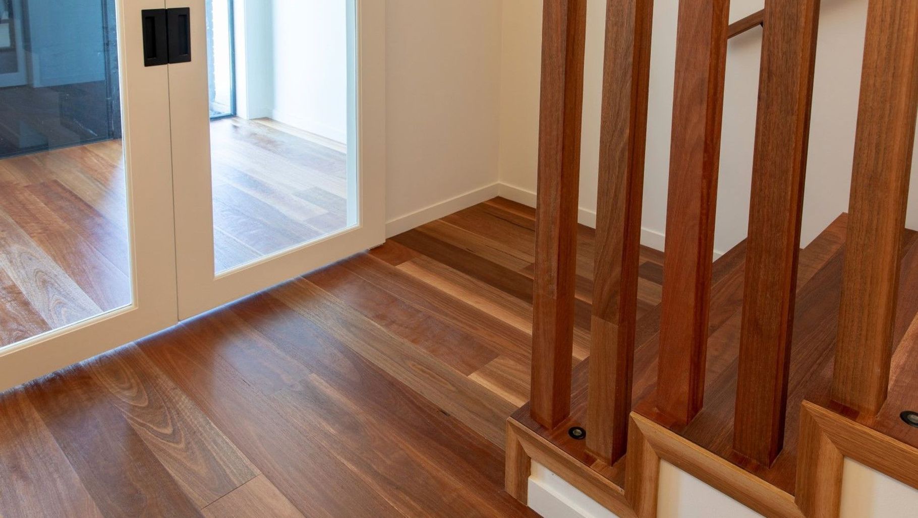ArchiPro Project Summary - Elegant Hatfields Beach residence featuring Hurford's First Floors engineered Spotted Gum flooring, complemented by solid timber staircase and bespoke balustrade crafted by Silverdale Stairs.