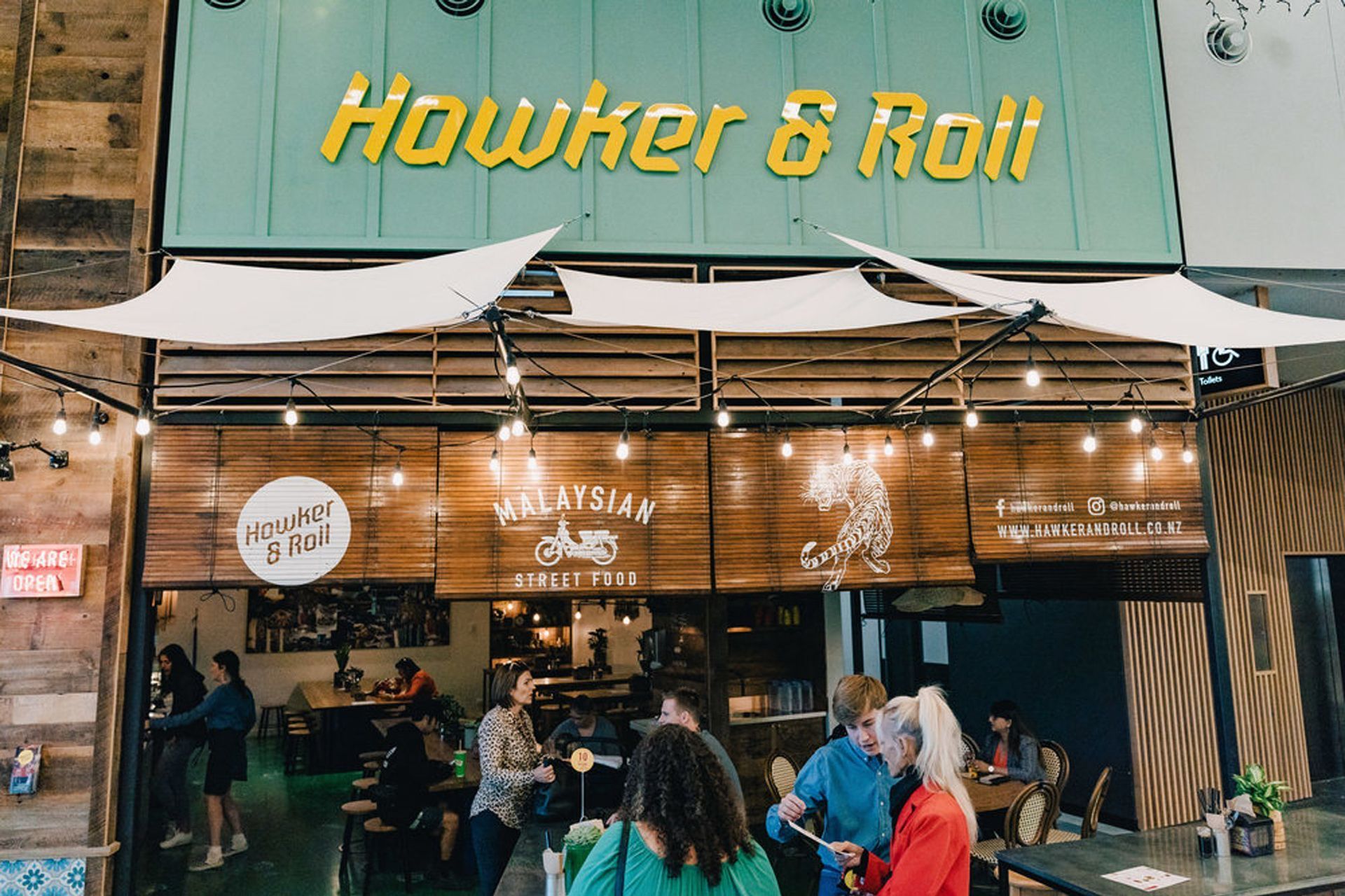 ArchiPro Project Summary - Innovative restaurant design for Hawker & Roll, located in the Tauranga Crossing shopping centre, alongside other locations in Sylvia Park, Queenstown, and Christchurch, showcasing Archidesign's commitment to exceptional dining environments.