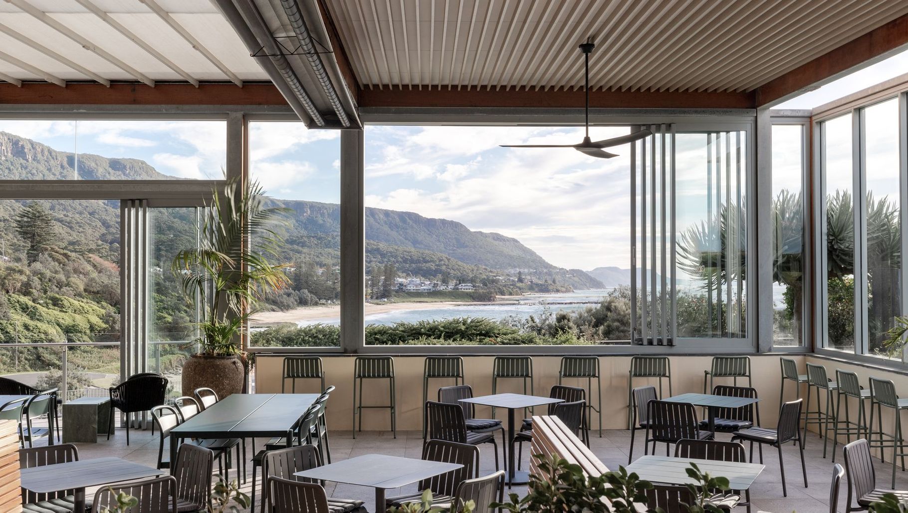 ArchiPro Project Summary - A contemporary hospitality venue in Austinmer, NSW, featuring a refreshed main bar, cafe, and beer garden with Knotwood timber accents, custom stone furniture, and curated furnishings for a luxurious experience, completed in 2024.