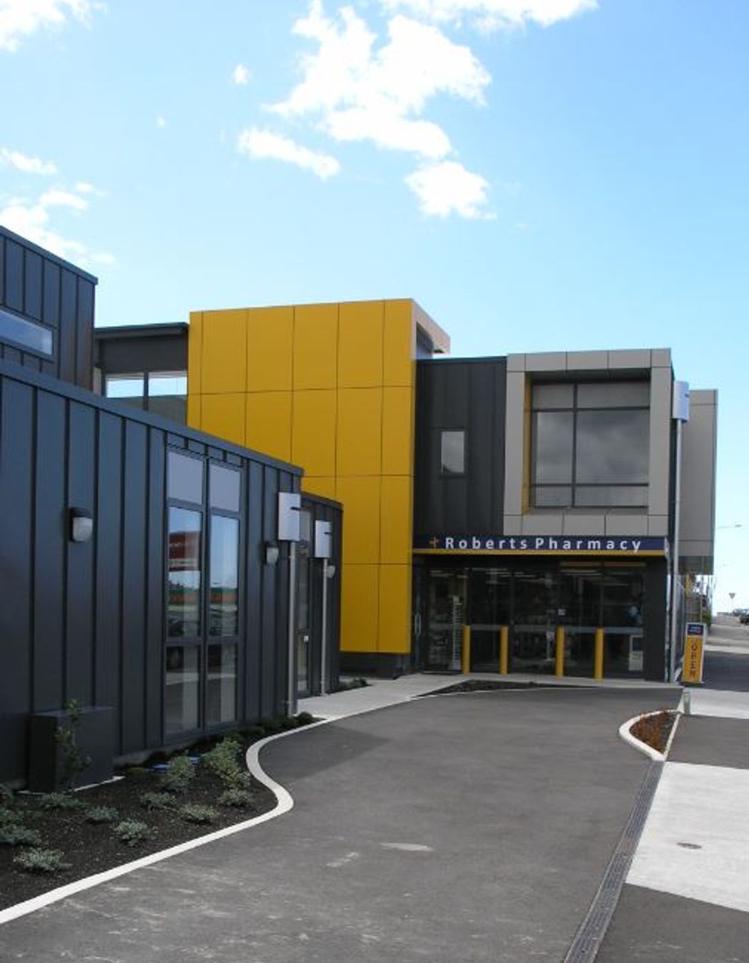 ArchiPro Project Summary - Heaton Street Medical Centre: A two-storey commercial development centralizing medical services, including two medical centres, a pharmacy, and health professional offices, designed to meet the growing healthcare needs of South Canterbury's aging population.