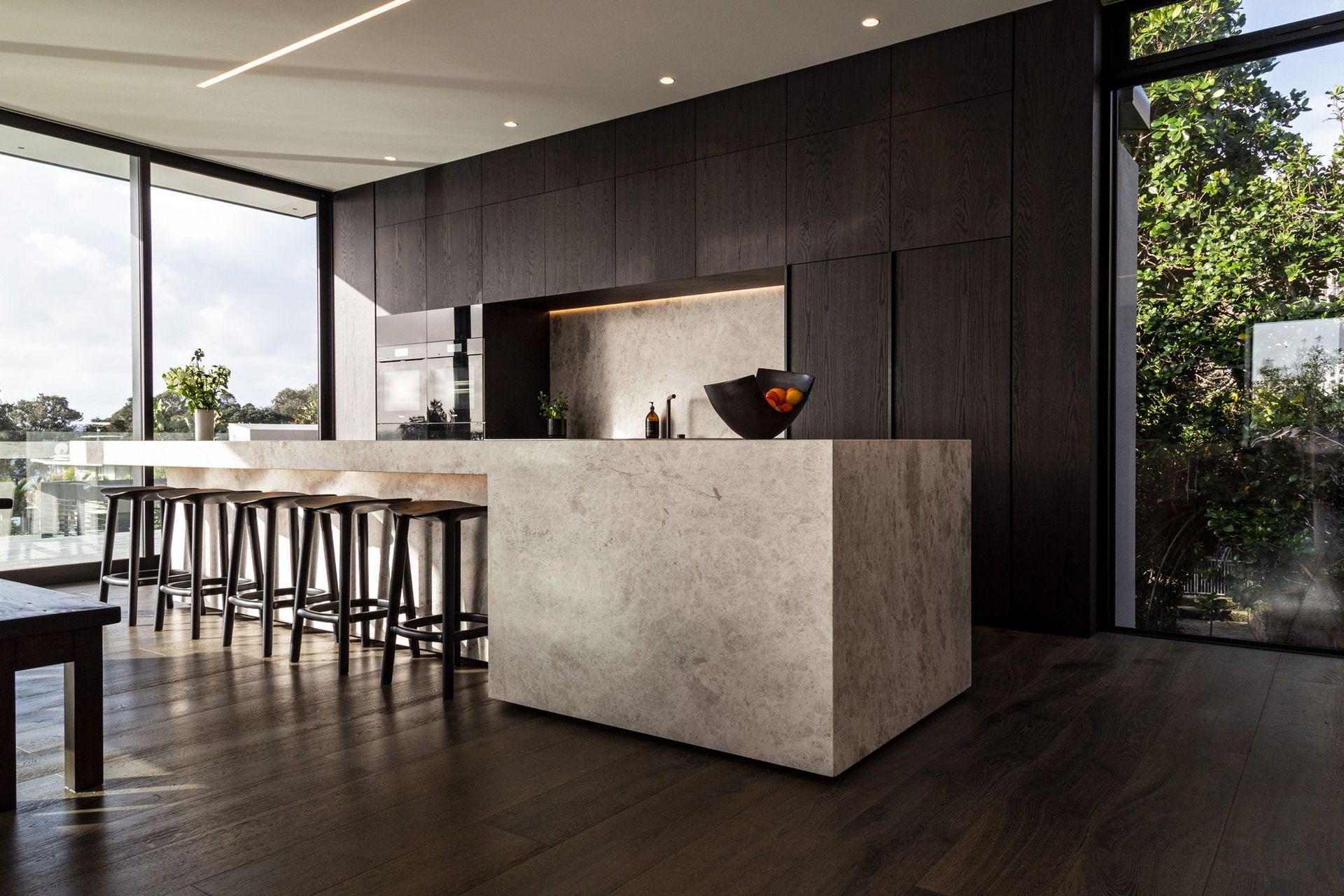 ArchiPro Project Summary - A contemporary home designed to seamlessly blend internal and external spaces, featuring interconnected masonry pods and a living pavilion that offers stunning harbour views.