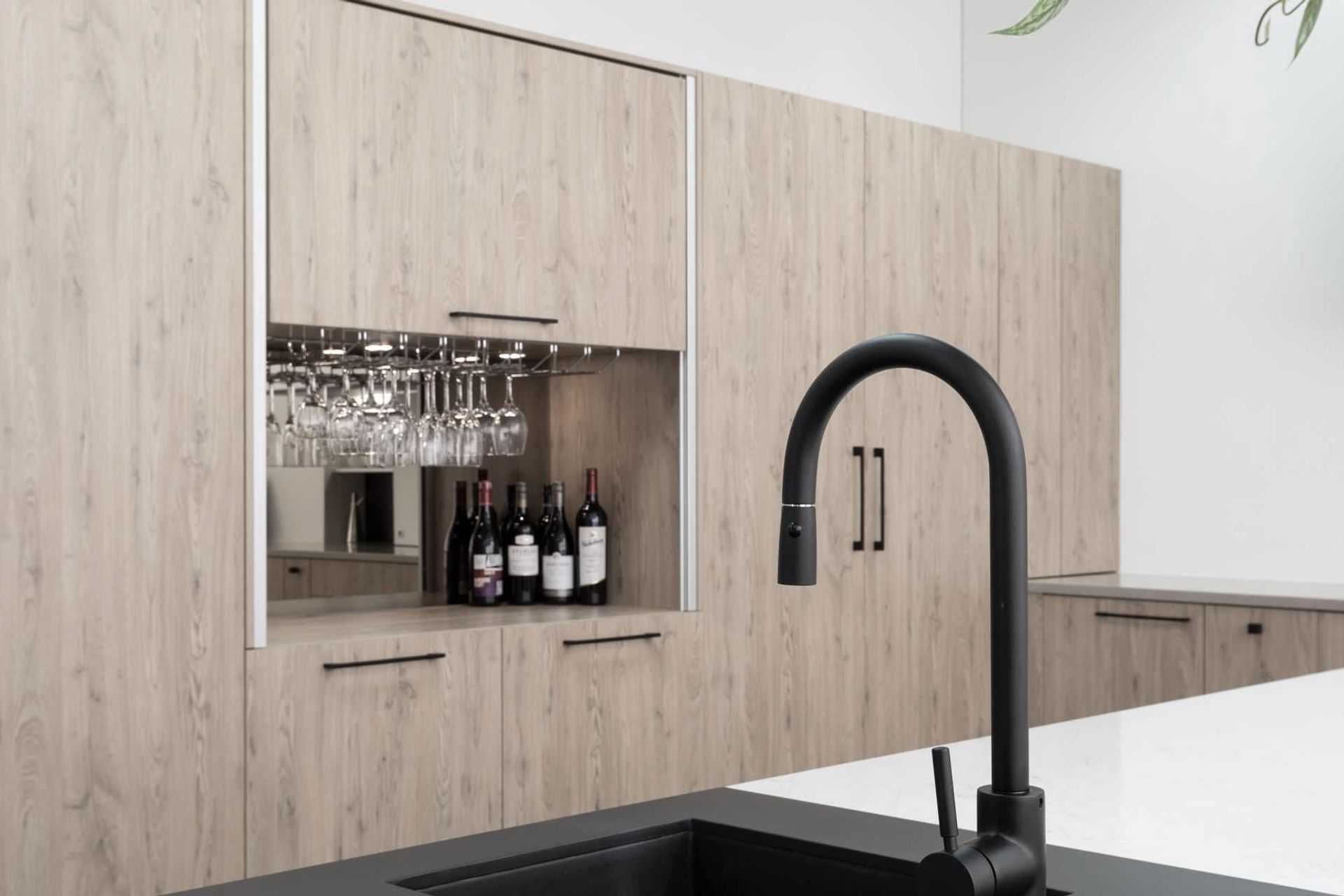 Benchtop surfaces include low silica composite stone, solid acrylic and high-pressure laminate while its Mercer sinks and taps range includes options in stainless steel, PVD and granite.