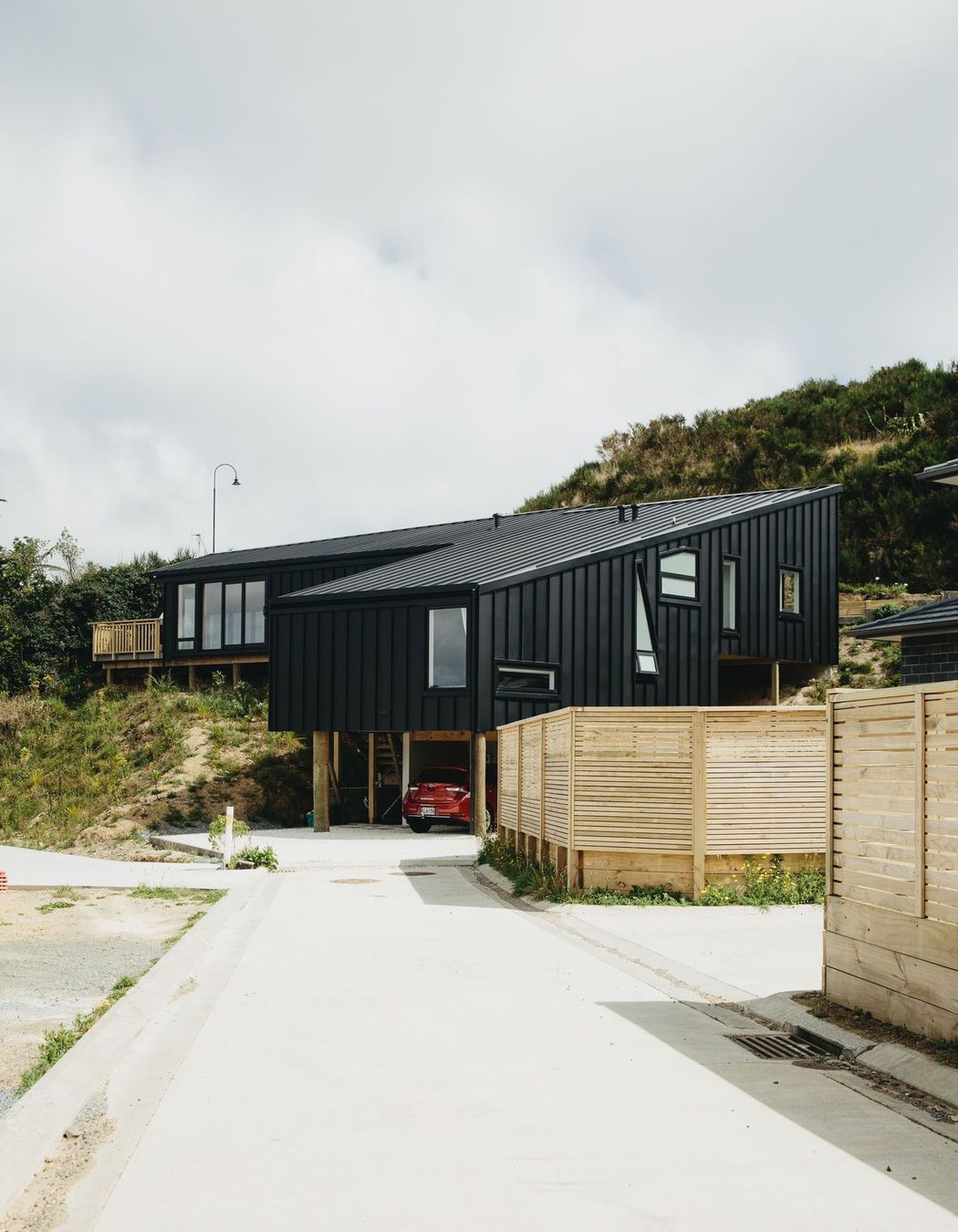 ArchiPro Project Summary - Hillside House: A stunning architectural feat on a sloping site in Newlands, featuring panoramic views of Wellington harbour, innovative design elements, and a seamless blend with the natural landscape.