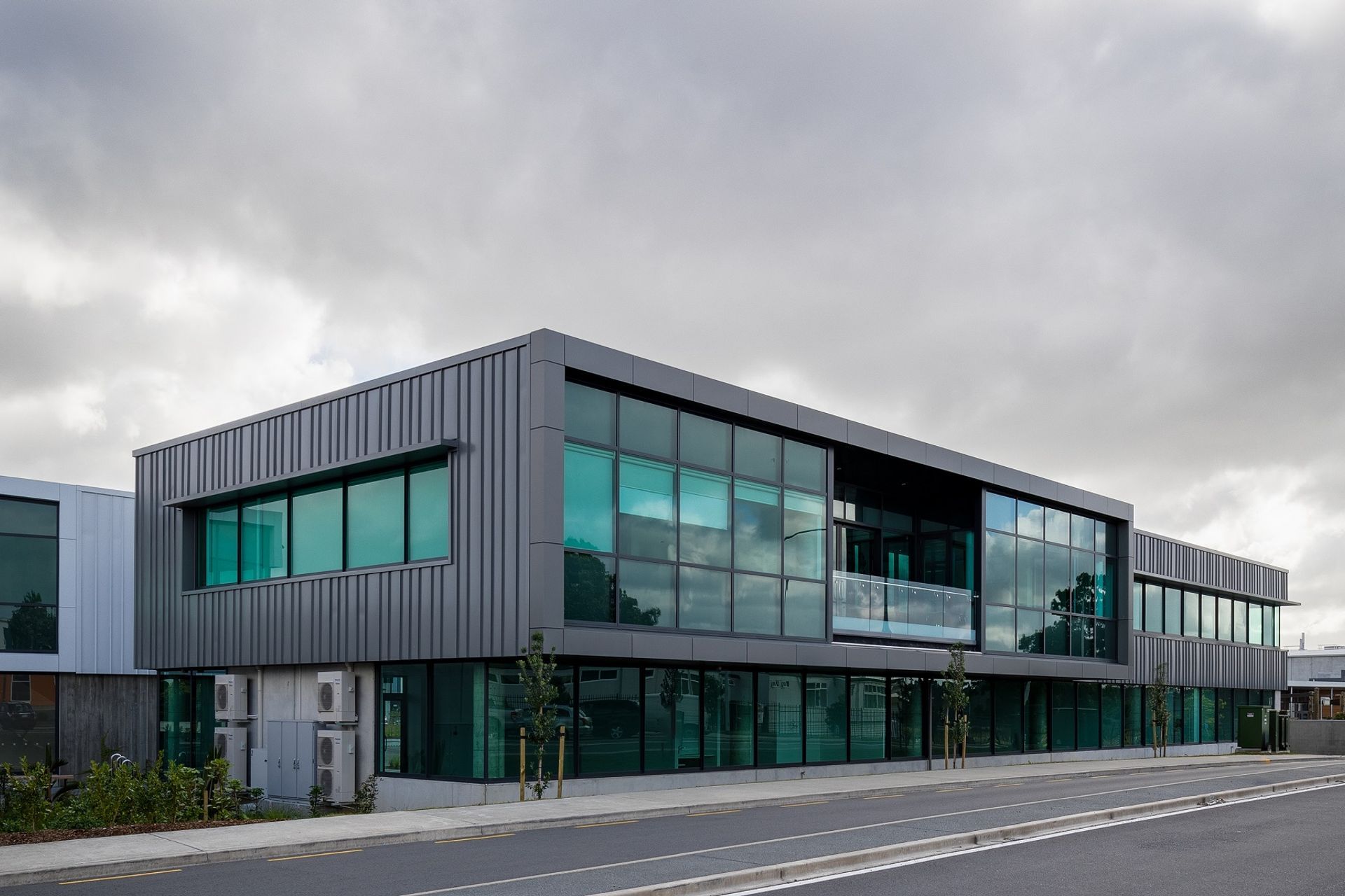 ArchiPro Project Summary - A striking retail development featuring eight versatile units, office spaces, and café facilities in the vibrant Hobsonville area, designed by Ashton Mitchell for Kea Property Group Limited, with a total investment of $7.6M.