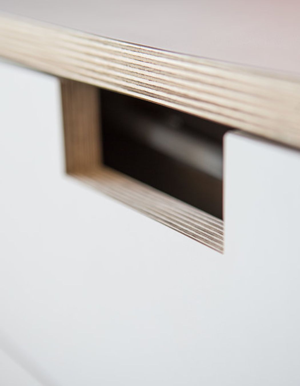 ArchiPro Project Summary - Custom plywood joinery designed for a flexible living room entertainment space, featuring integrated shelving, cable management, power points, and secure storage with child locks for safety.