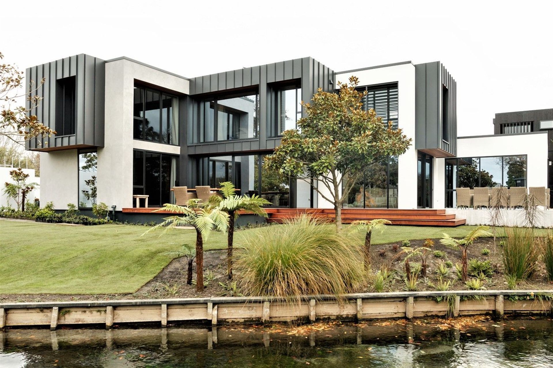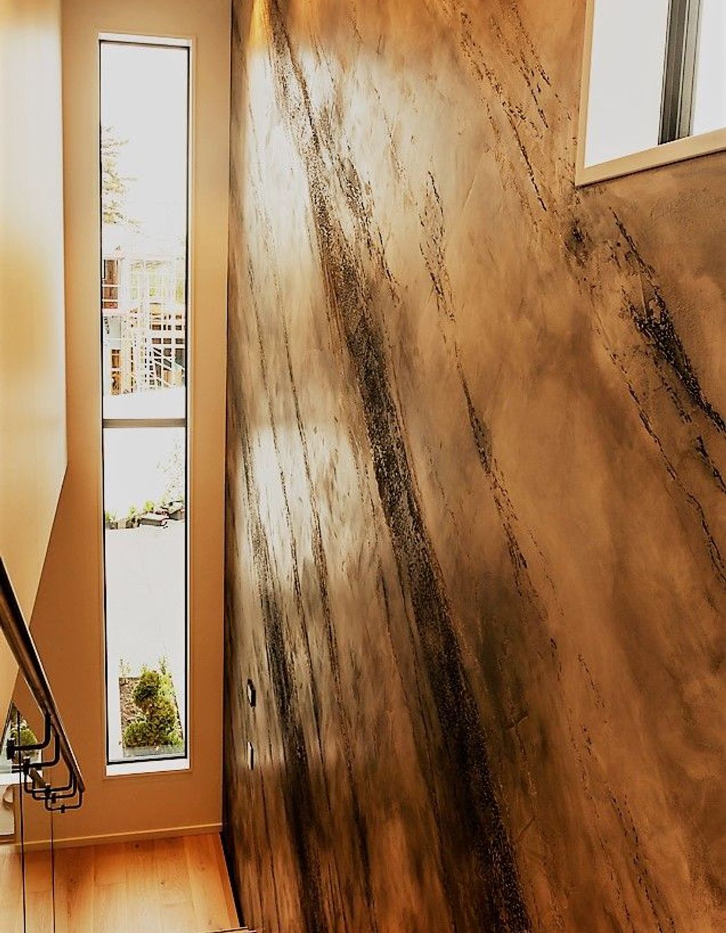 ArchiPro Project Summary - A bespoke Christchurch residence showcasing innovative finishes and high-quality materials, featuring a striking stairwell with Italian Eco-style ‘Crazy Stone’ lime plaster, expertly crafted by Home Trends Builders and Bruce Cooper Plastering.