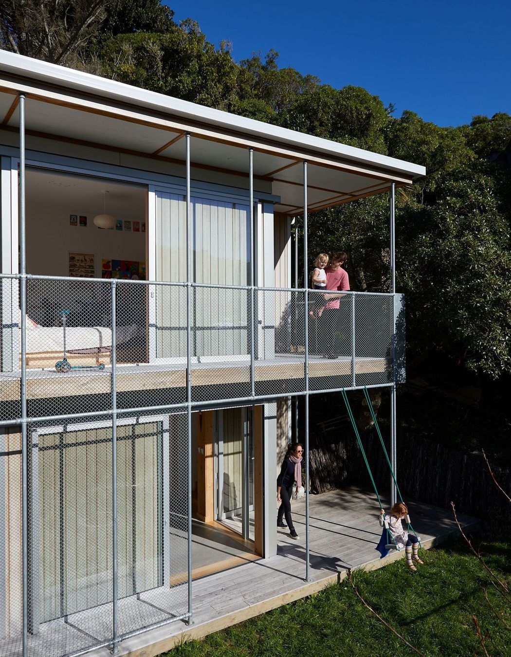 ArchiPro Project Summary - A two-storey, three-bedroom residence designed for a young family, featuring passive solar design, efficient low-tech solutions, and a strategic hillside location for privacy and views.