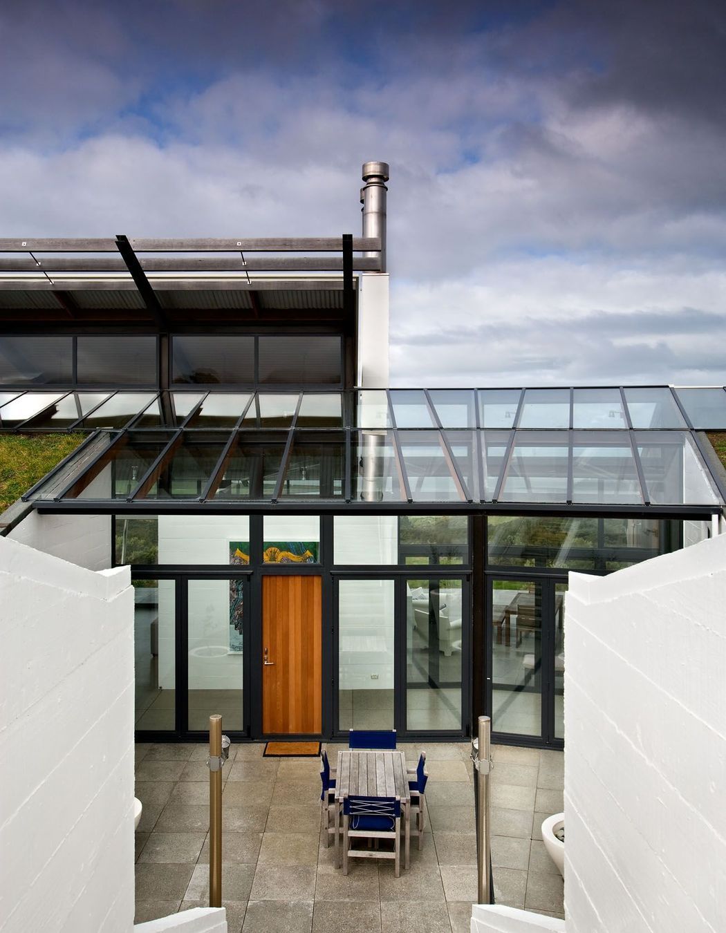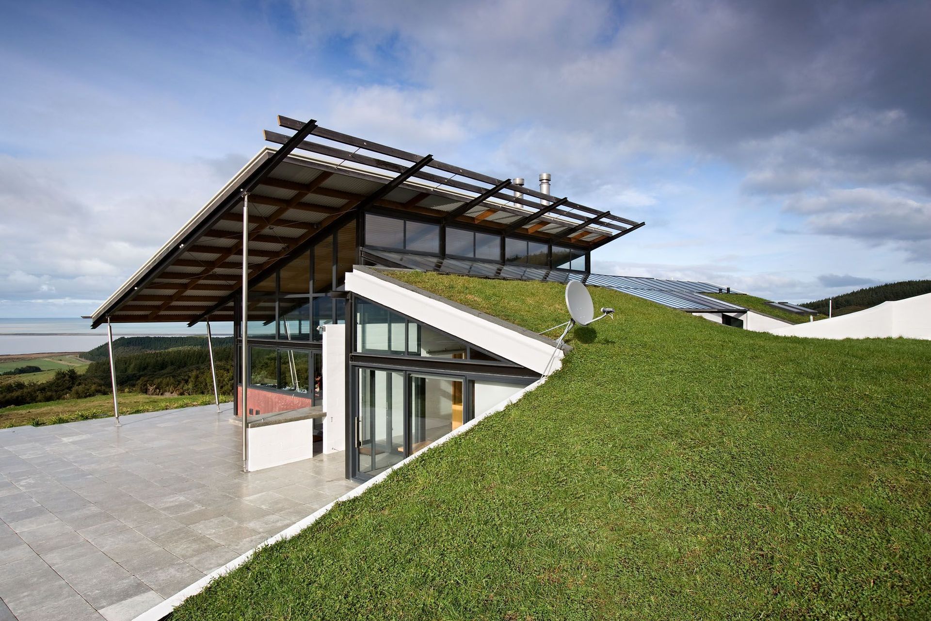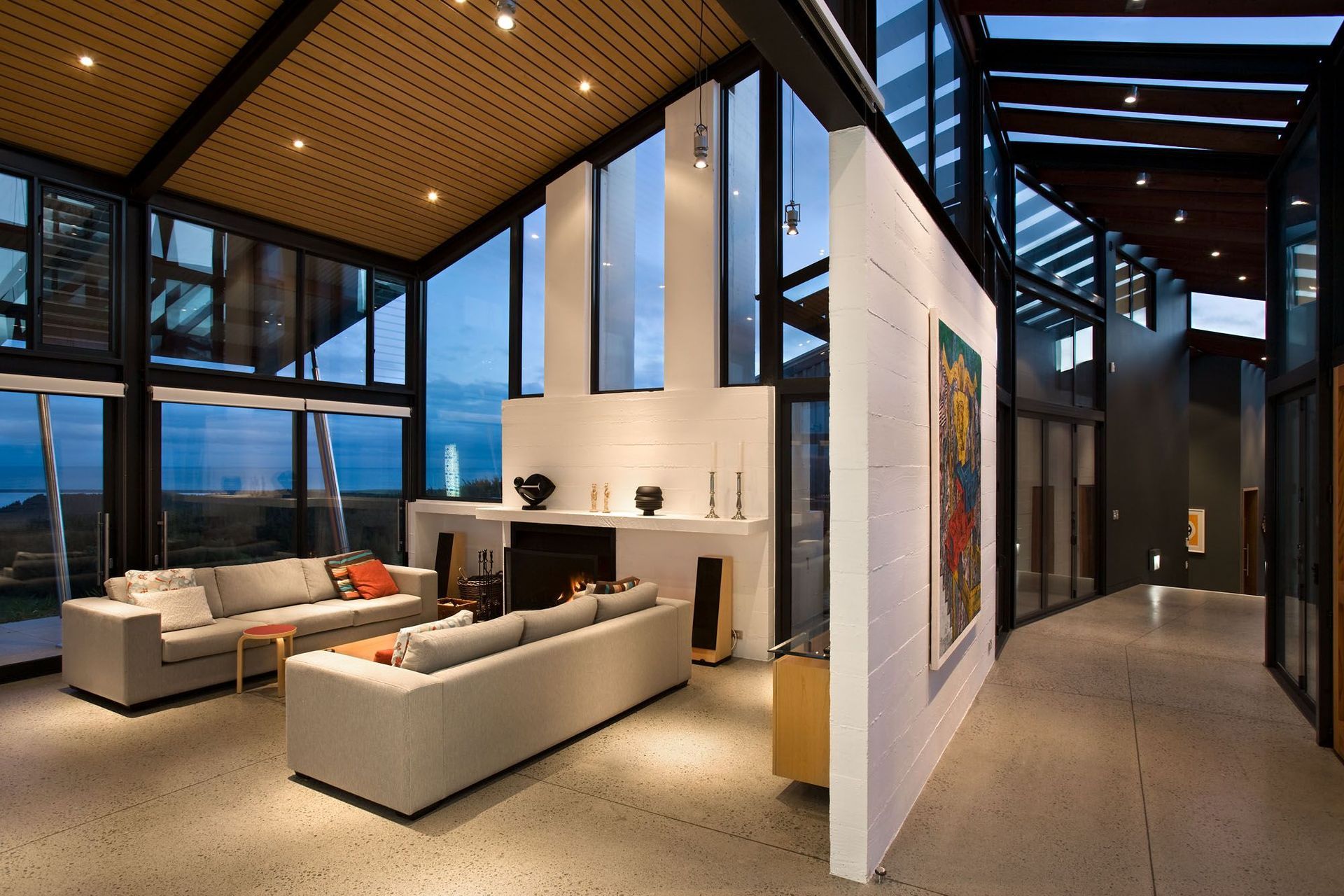 ArchiPro Project Summary - Contemporary house at Pounui Ridge featuring turf roofs, sunlit galleries, and stunning views, designed to harmonize with the natural landscape.