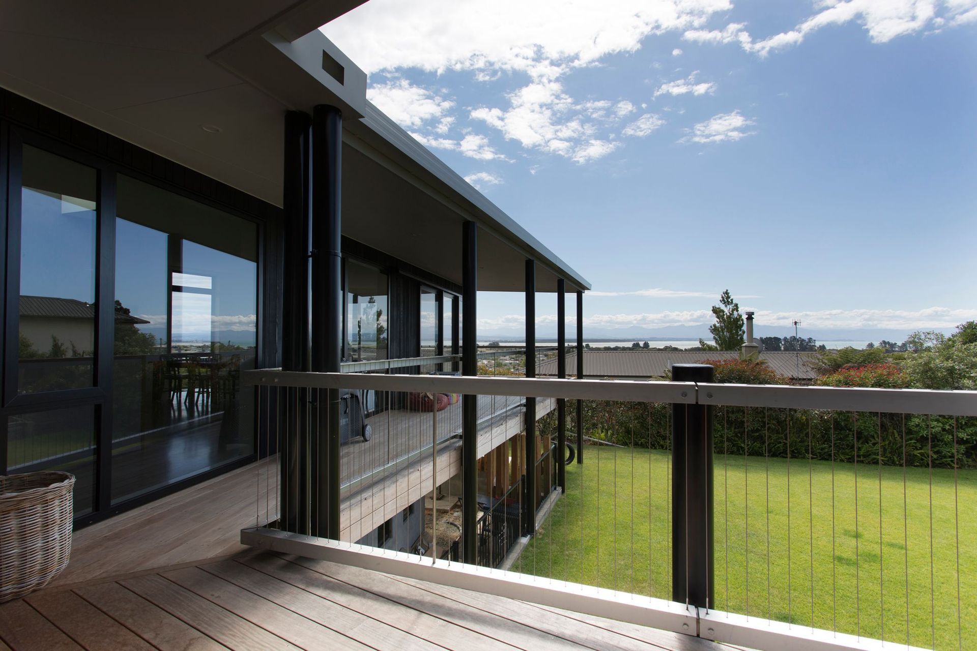ArchiPro Project Summary - A thoughtfully designed family home for kayakers, featuring integrated storage solutions, a striking facade of mixed materials, and an angled floor plan that enhances natural light and views while providing a seamless connection to the outdoor space.