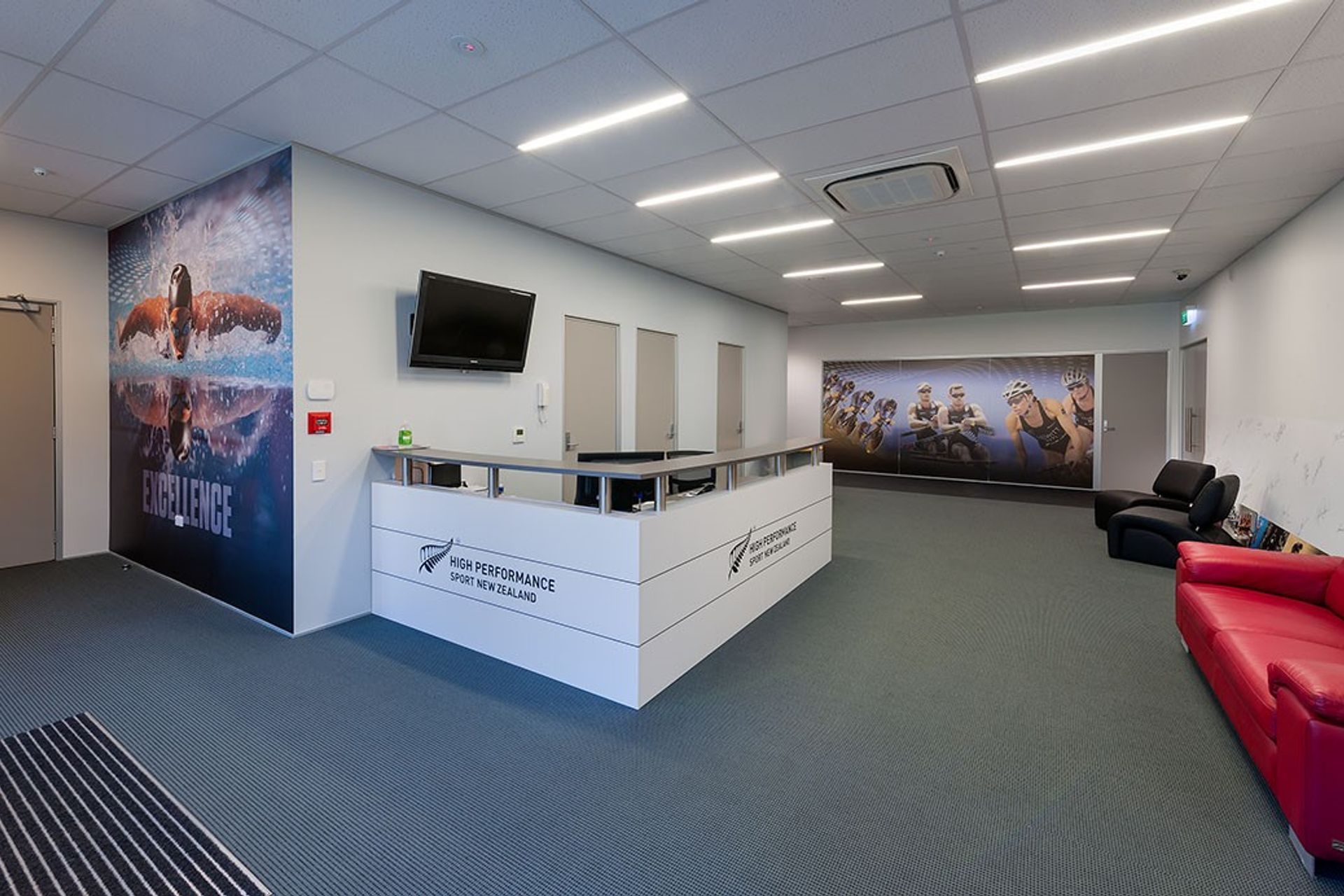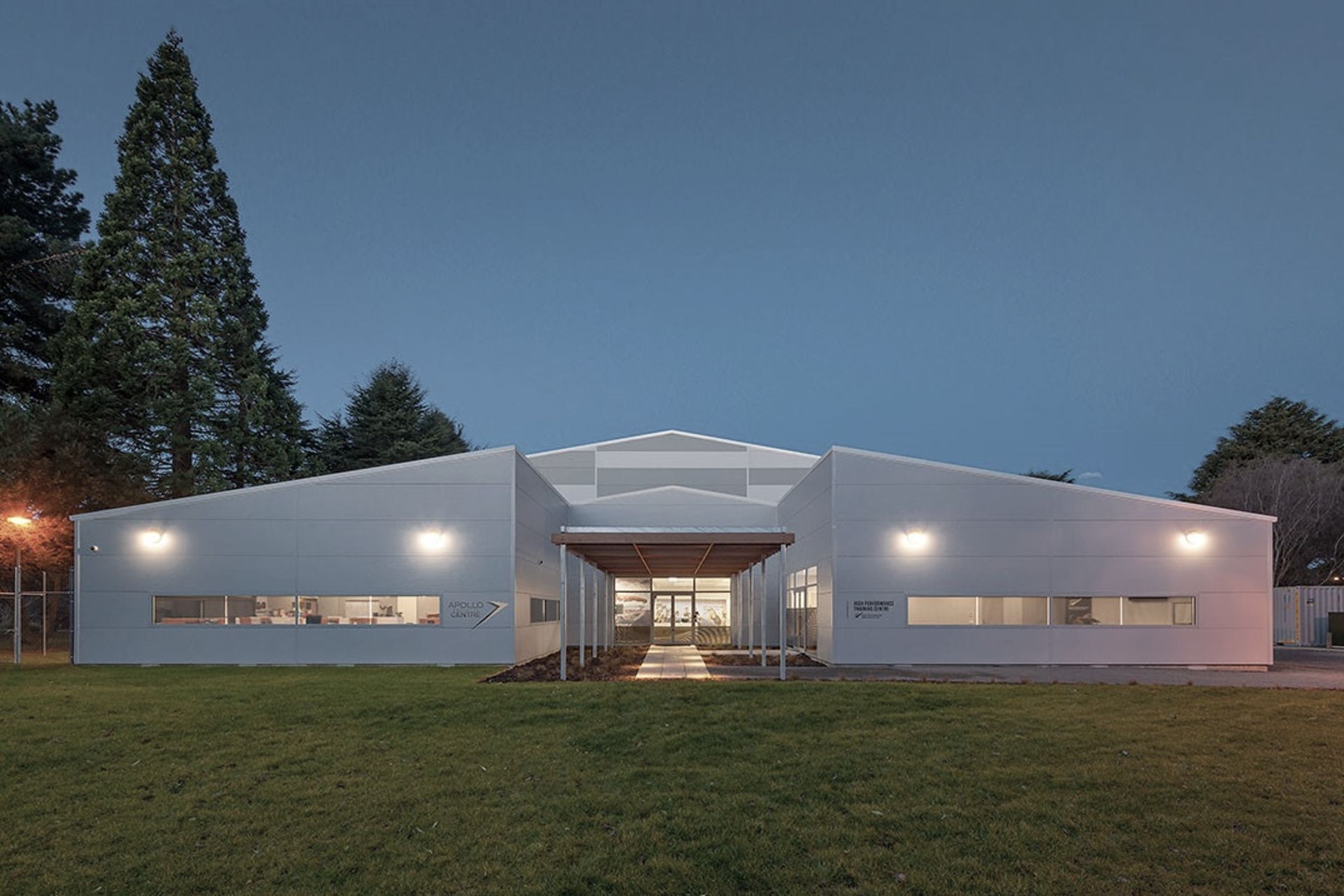 ArchiPro Project Summary - High Performance Sport NZ's Apollo Projects Centre: A state-of-the-art training facility in Christchurch featuring advanced training areas, physiotherapy rooms, and a full-size netball court, designed for optimal athlete performance and comfort.