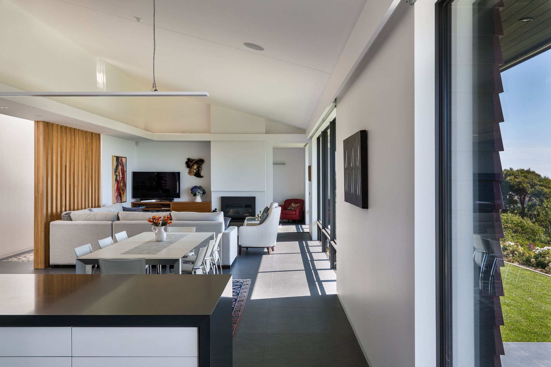 ArchiPro Project Summary - A light-filled home on the Waikanae Hills, designed to harmonize with the landscape, featuring open-plan living spaces and private bedrooms, all while maximizing stunning views of Waikanae Beach and Kapiti Island.