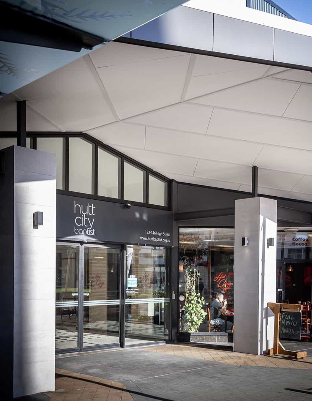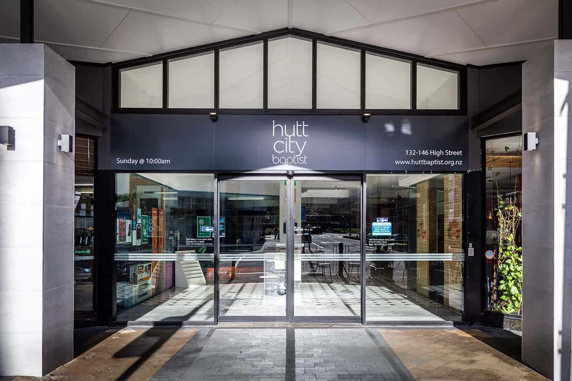 ArchiPro Project Summary - Revitalization of Hutt Baptist Church: Transforming a former cinema into a modern urban identity with a welcoming façade and enhanced community presence in the heart of Lower Hutt.