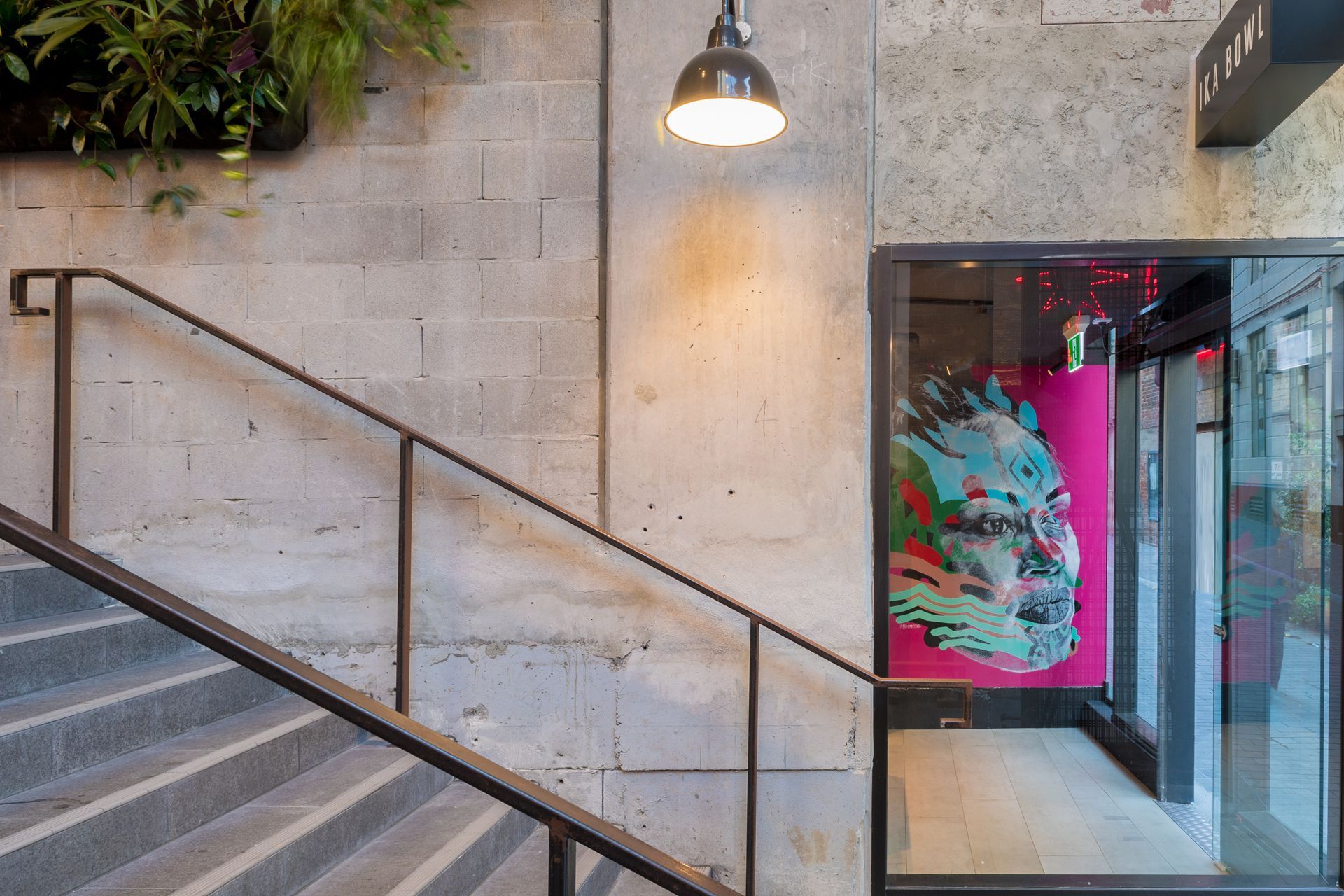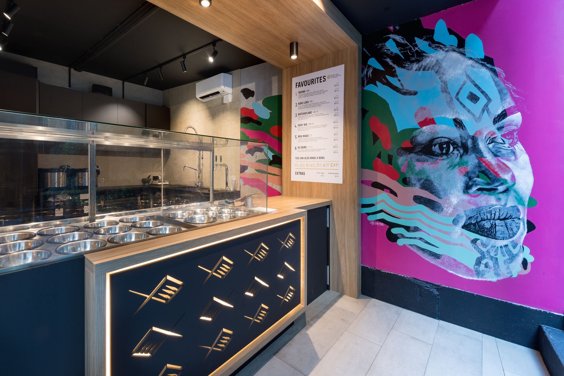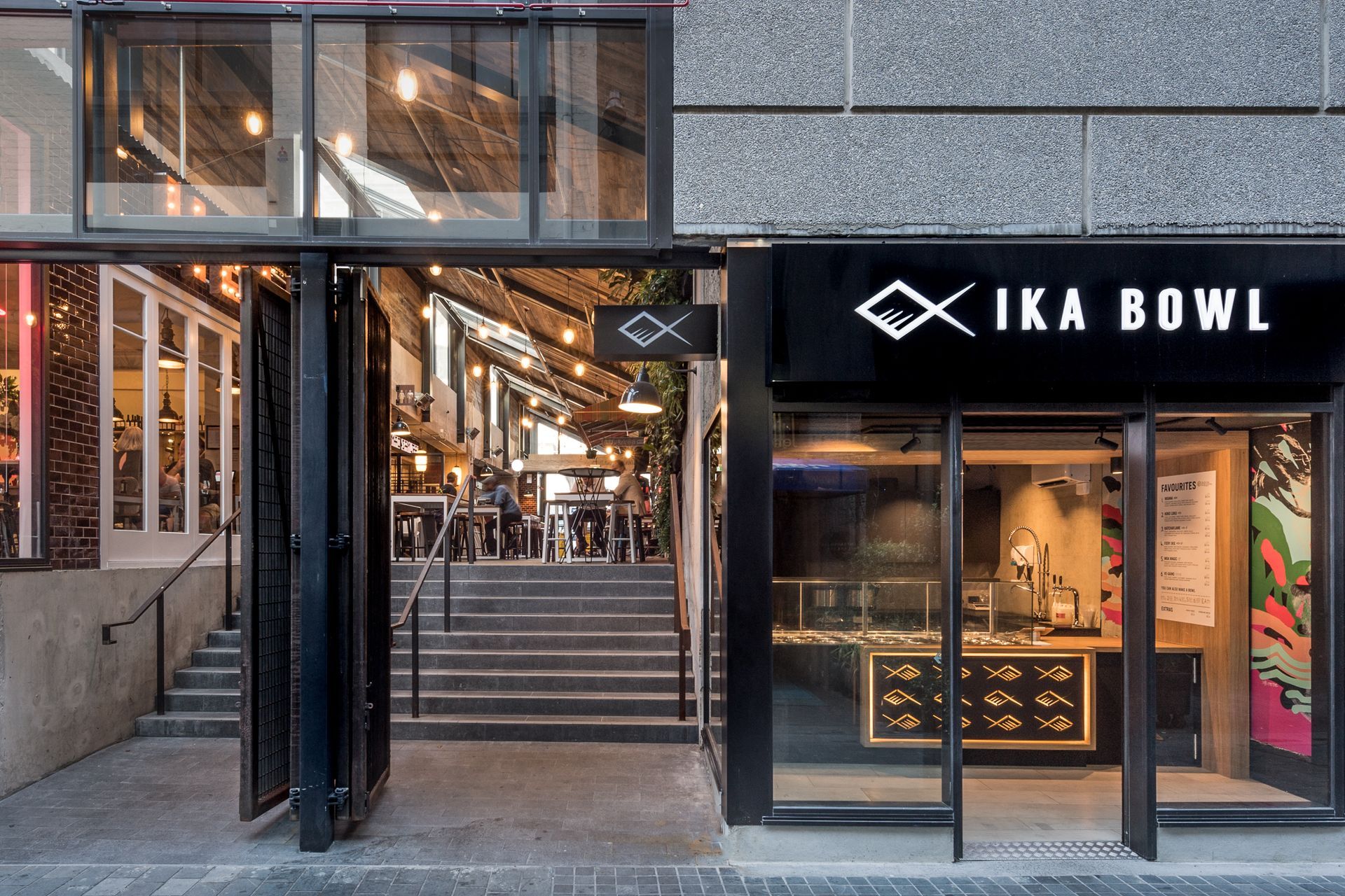 ArchiPro Project Summary - The Ika Bowl project features custom shelving and display cases, enhancing the interior design with rich wood stains and varnish for a warm atmosphere.