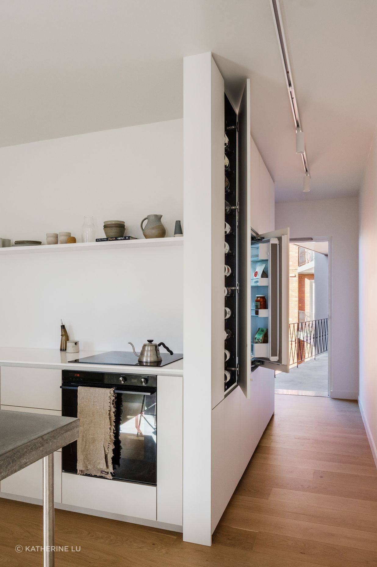 ArchiPro Project Summary - A 1960s two-bedroom apartment reimagined to enhance light and landscape connections, featuring a serene palette of concrete, stainless steel, and oak for a tranquil living environment.