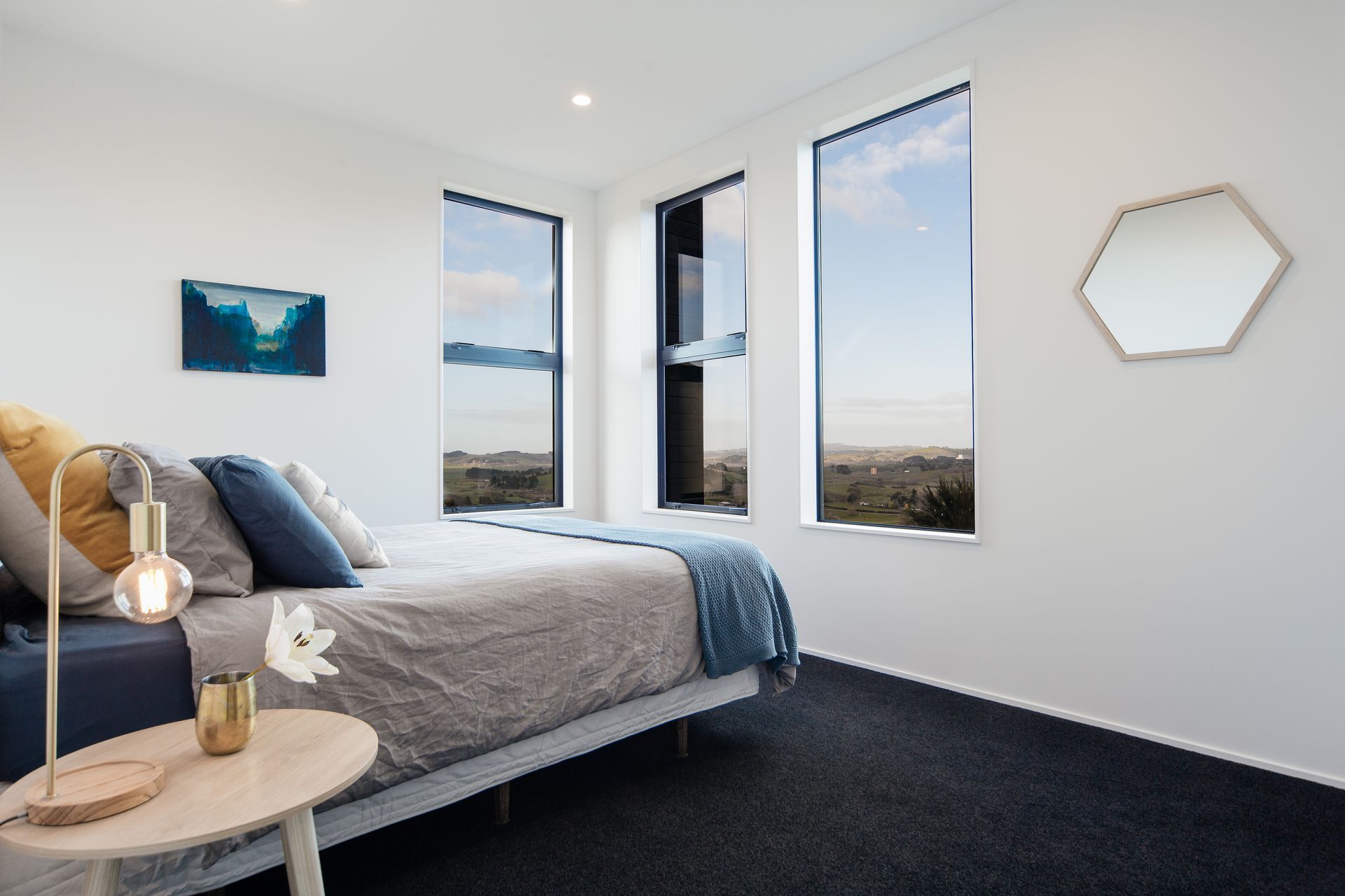 ArchiPro Project Summary - A bespoke industrial black barn home atop the Bombay Hills, featuring custom concrete elements, soaring ceilings, and stunning 180-degree views, designed for modern living with a focus on convenience and natural materials.