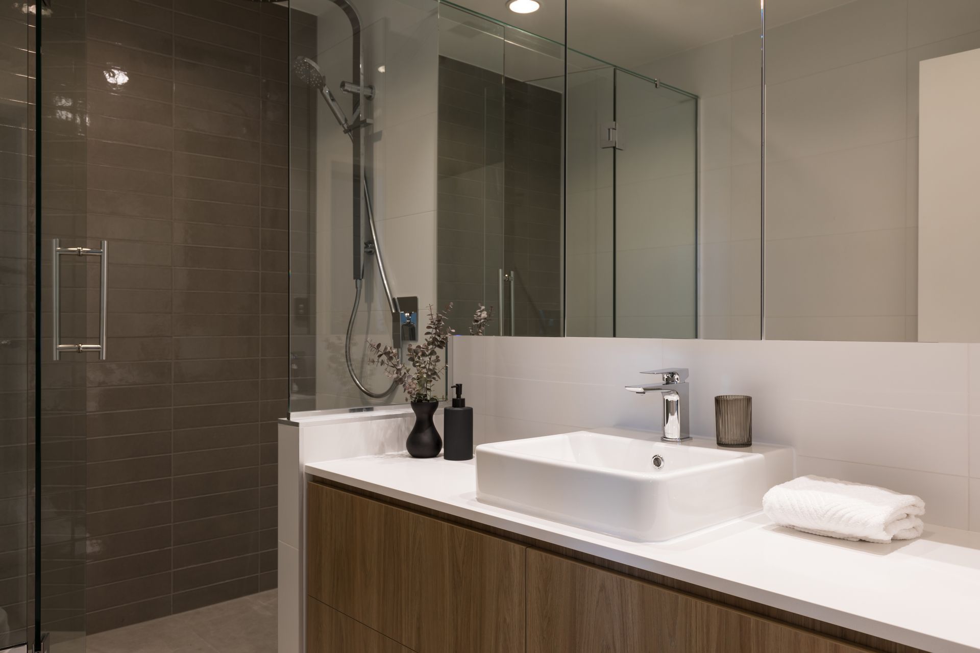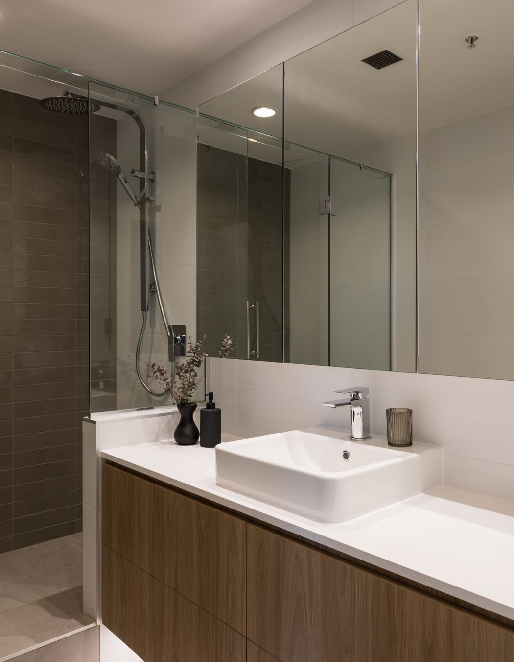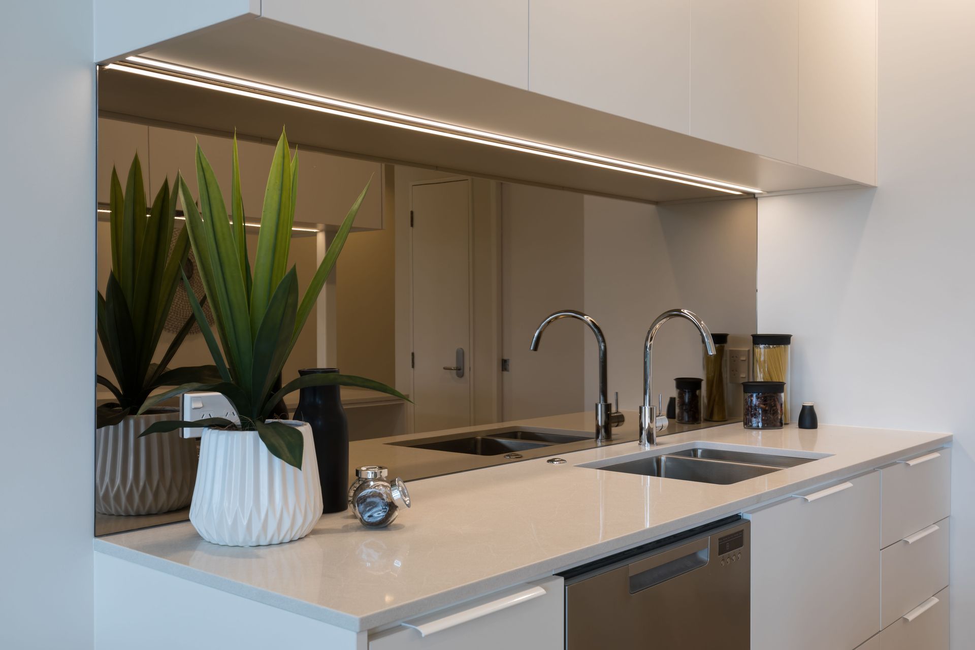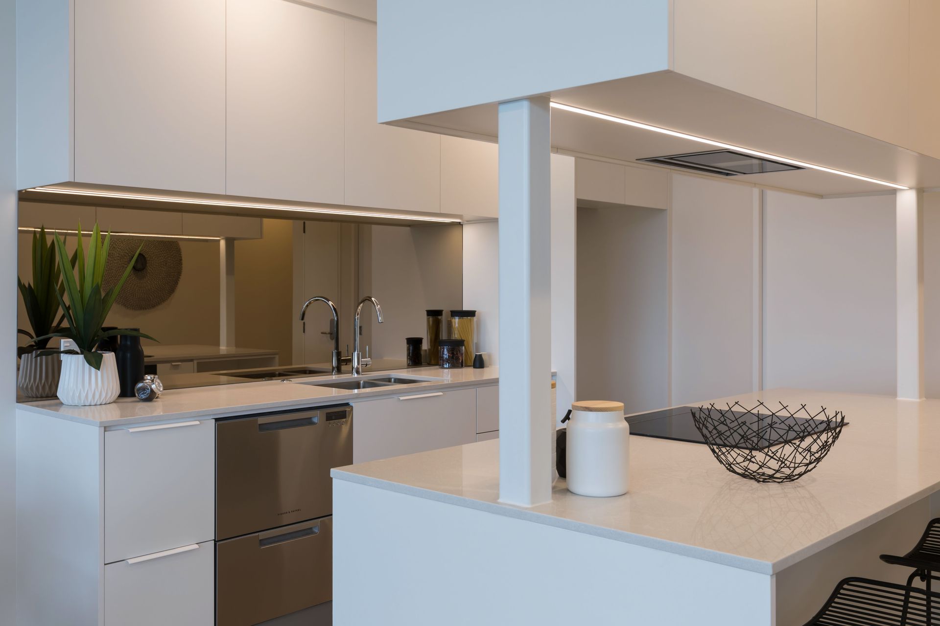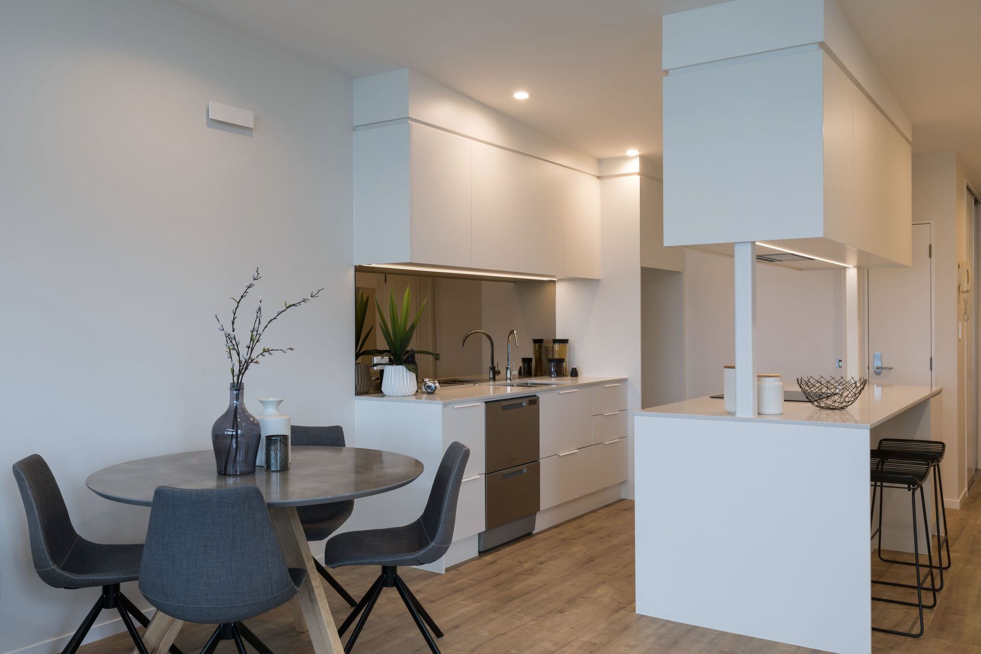 ArchiPro Project Summary - Contemporary renovation of a two-bedroom apartment in central Auckland, featuring an open kitchen design, luxurious bathrooms, and warm neutral tones, completed in 2018 for enhanced living space and future owner customization.