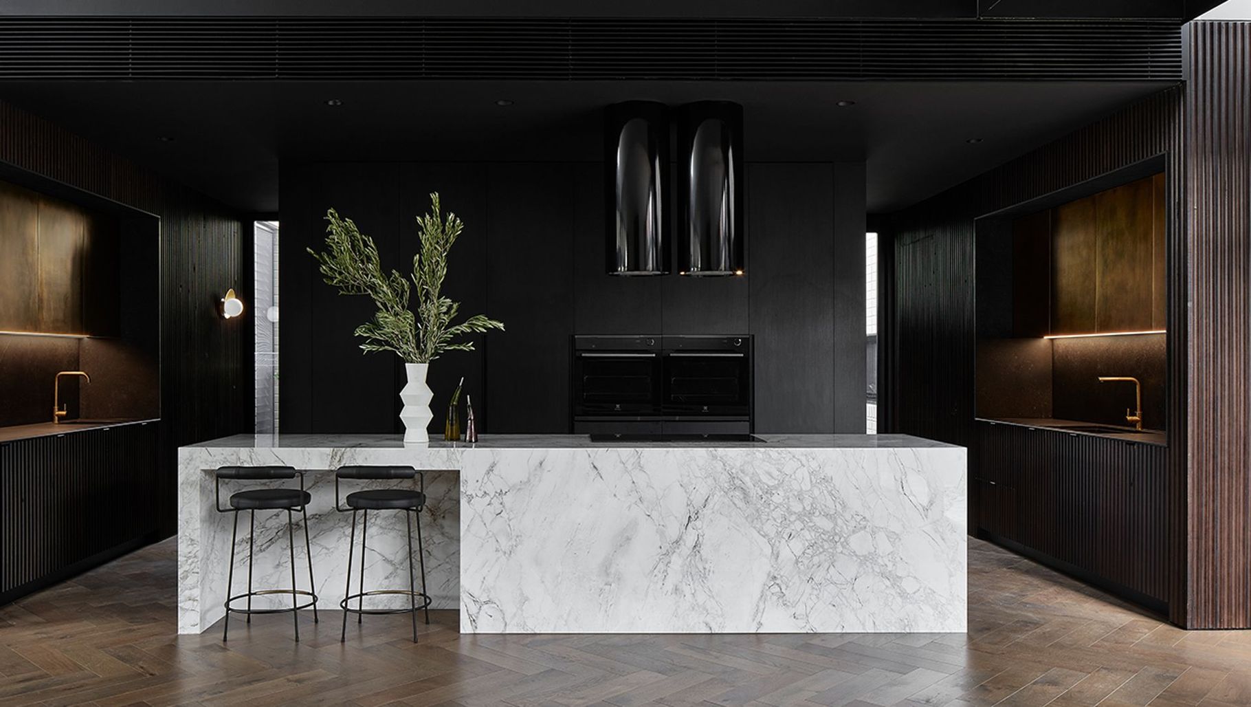 ArchiPro Project Summary - Iron Chef House is a bespoke residential project by Das Studio, showcasing a striking dark steel façade, a chef-inspired kitchen, and elegant Auburn Herringbone flooring that harmonizes with the natural stone outdoor areas, reflecting the owners' passions.