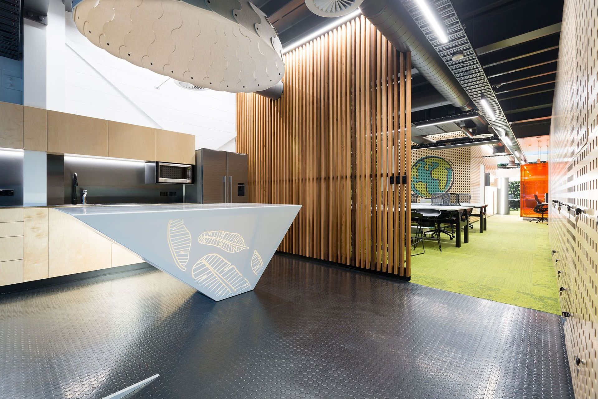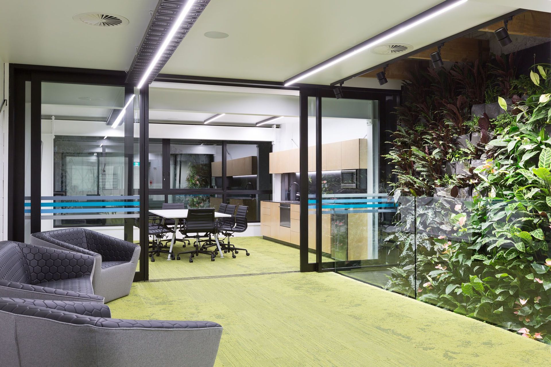 ArchiPro Project Summary - Transforming a narrow ex-retail space into a vibrant and functional office for IVHQ, featuring contemporary design elements like green walls, a staff café, and innovative meeting spaces, recognized with the NZIA Western Branch Award for Commercial Architecture.
